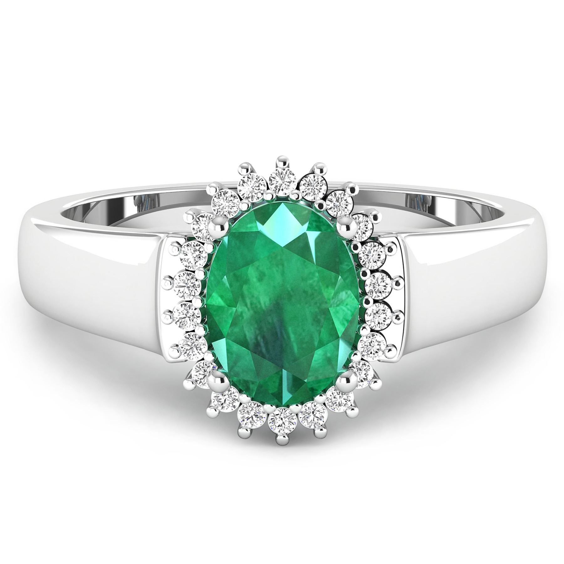 Zambian Emerald (AA) Oval 8x6mm - 1Pc + White Diamond F/C Round 1.00mm - 22Pcs (I1-I2/I color). Total weight of gemstone is 1cts. Total weight of Diamonds is 0.1cts. Total weight of this ring is 3.98 grams. Ring size 7.