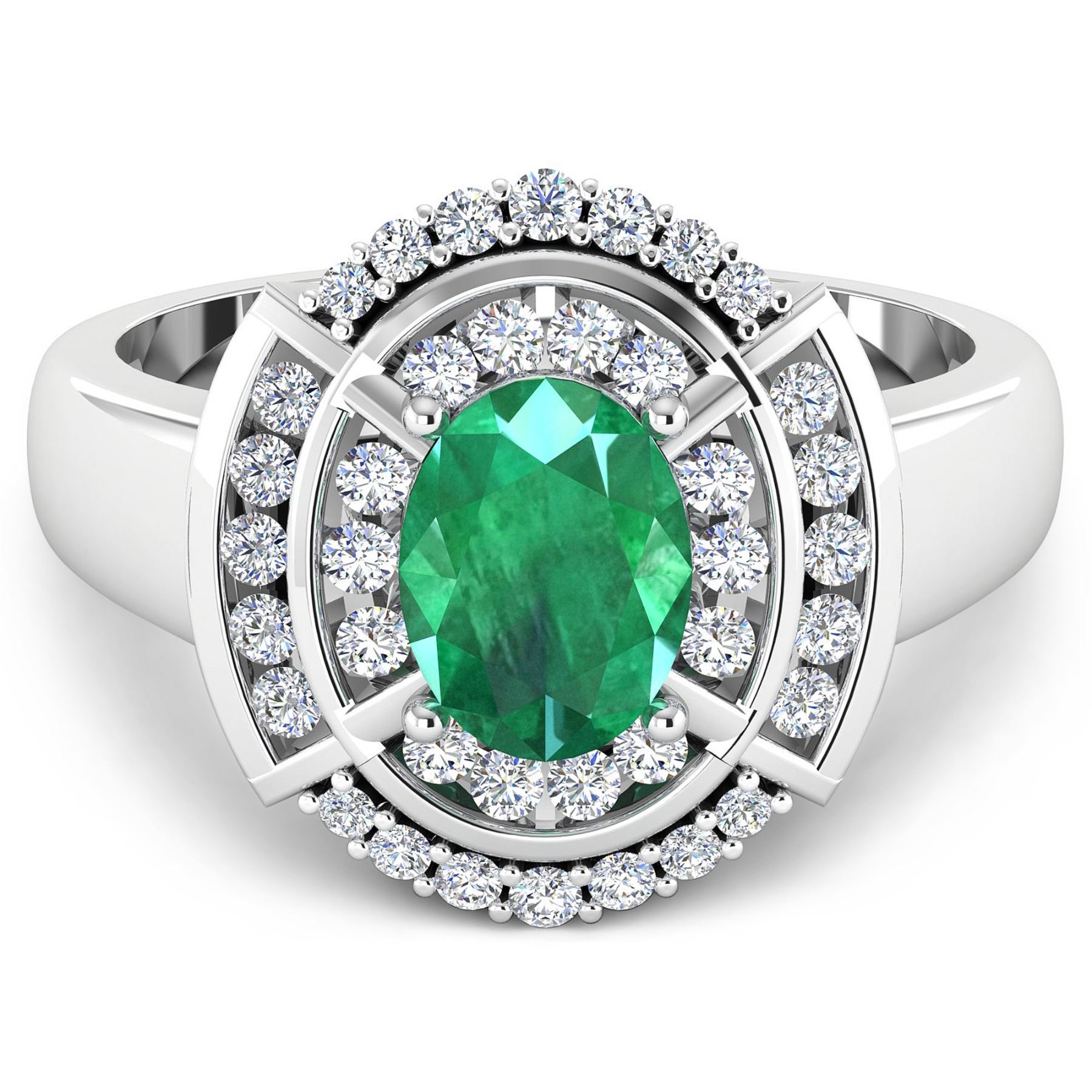 14KT White Gold 1ct Zambian Emerald and Diamond Ring