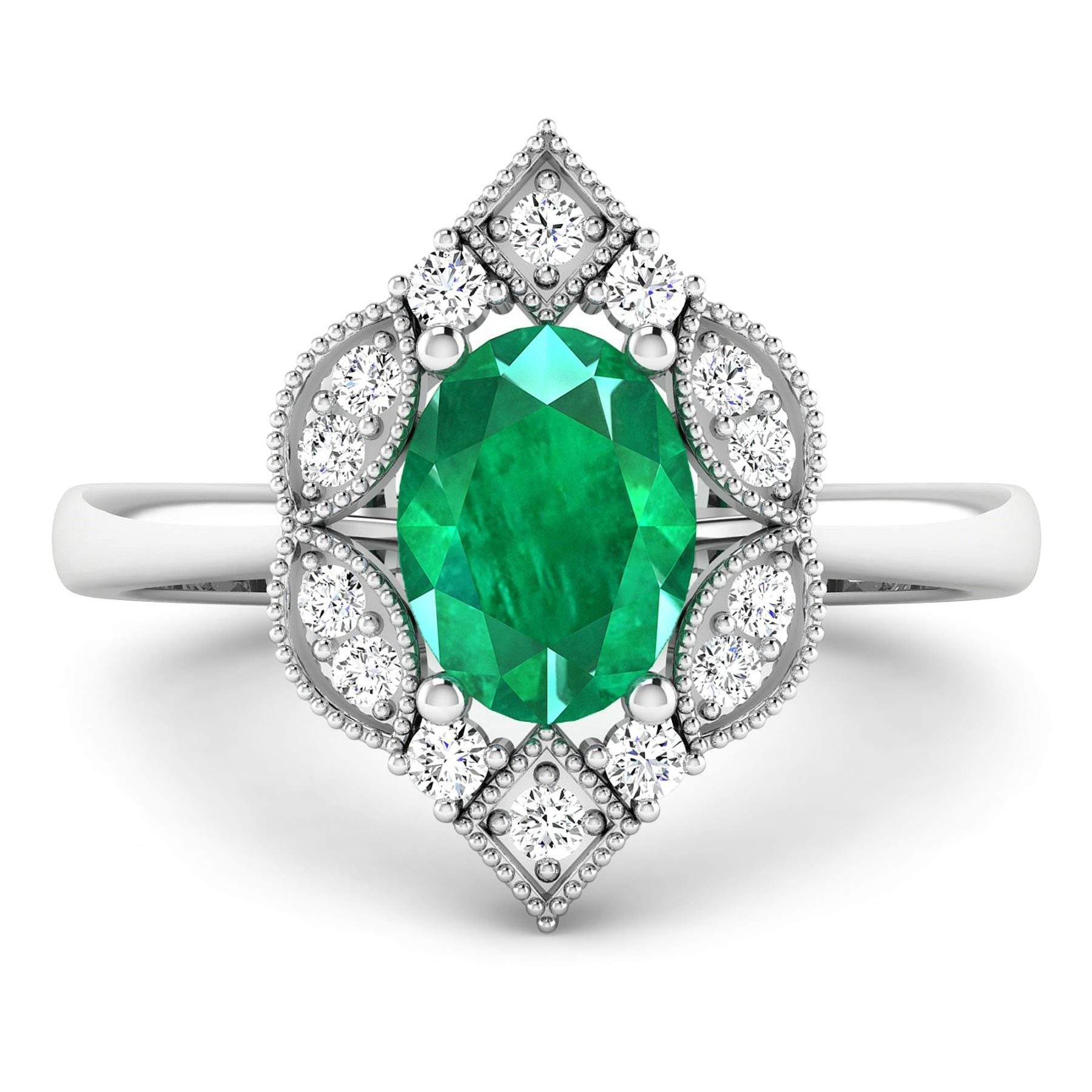 Zambian Emerald (AA) Oval 8x6mm - 1Pc + White Diamond F/C Round 1.50mm - 14Pcs ( I1-I2/I color ) Total weight of gemstone is 1cts. Total Diamond weight is 0.2cts. Total weight of this ring is 2.44 grams. Ring size 7.