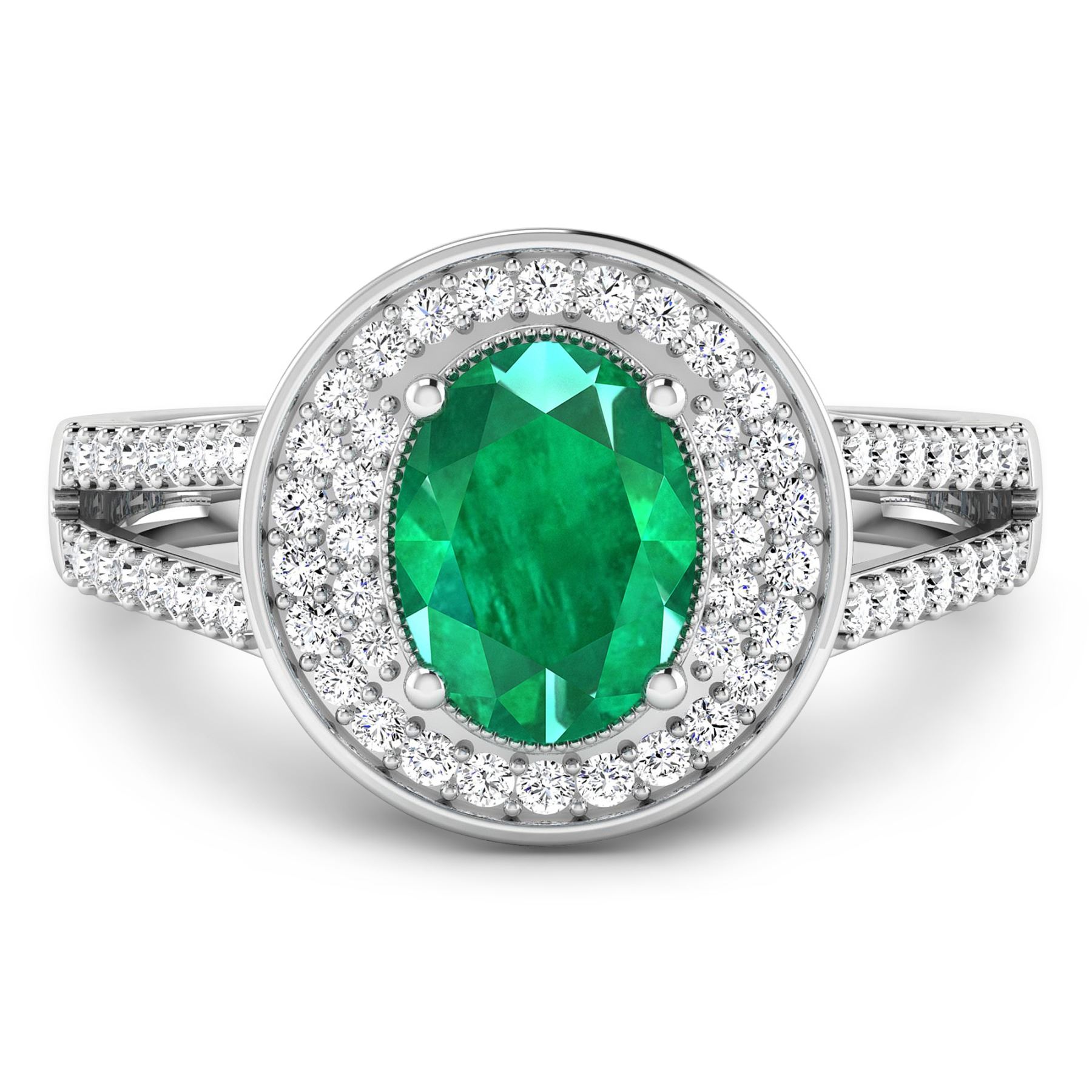 Zambian Emerald (AA) Oval 8x6mm - 1Pc + White Diamond F/C Round 1.10mm - 24Pcs + White Diamond F/C Round 1.00mm - 40Pcs ( I1-I2/I color ) Total weight of gemstone is 1cts. Total Diamond weight is 0.34cts. Total weight of this ring is 3.02 grams. Ring size 7.