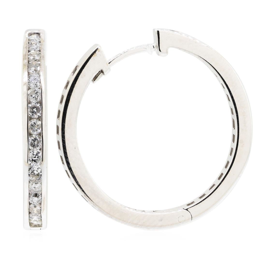 One pair of inside out hoop earrings featuring: 14KT white gold weighing 7.6 grams containing diamonds weighing 2.00ctw. The earrings have a diameter of 26 millimeters.