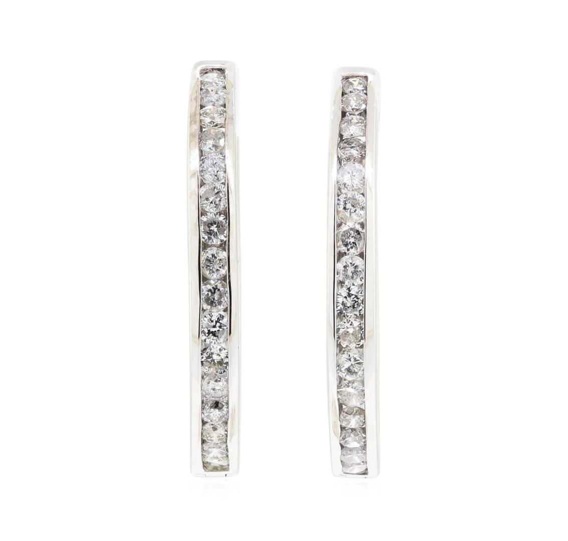 One pair of inside out hoop earrings featuring: 14KT white gold weighing 7.6 grams containing diamonds weighing 2.00ctw. The earrings have a diameter of 26 millimeters.