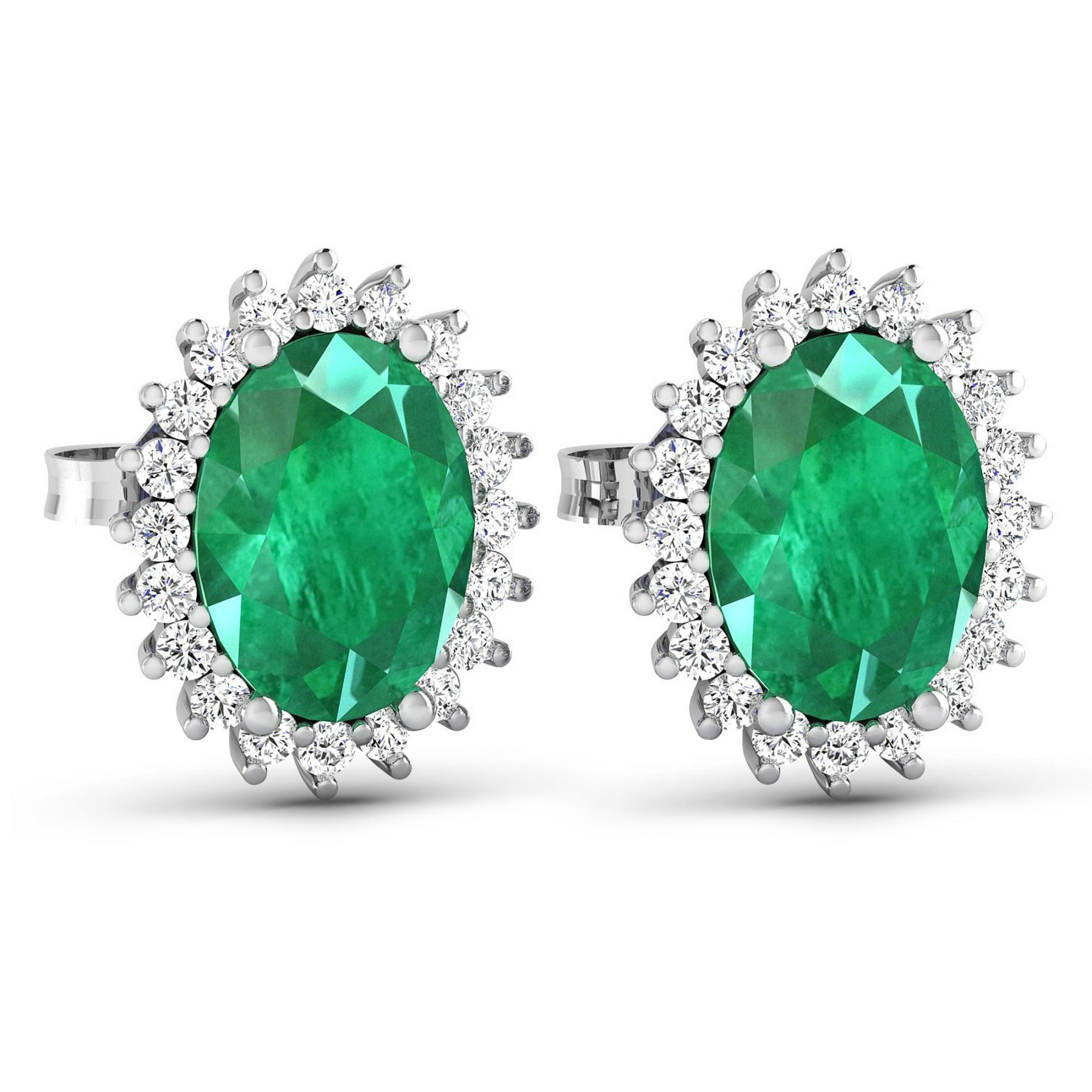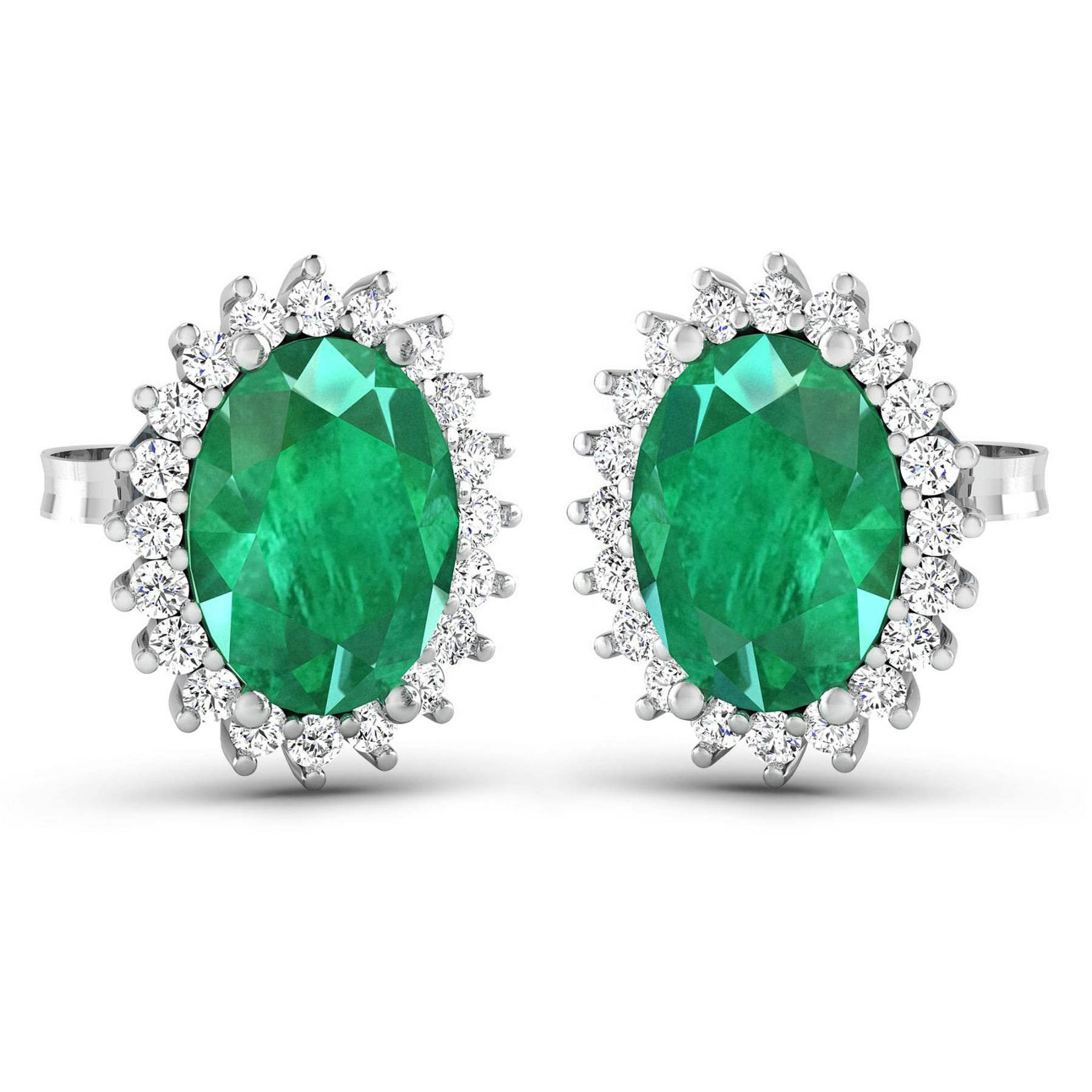 (2) Zambian Emerald stones with a total weight of 2.00cts. (40) round Diamonds with a total weight of 0.26cts with a color of i and clarity of i1-i2. Total weight of these earrings are 2.79 grams.