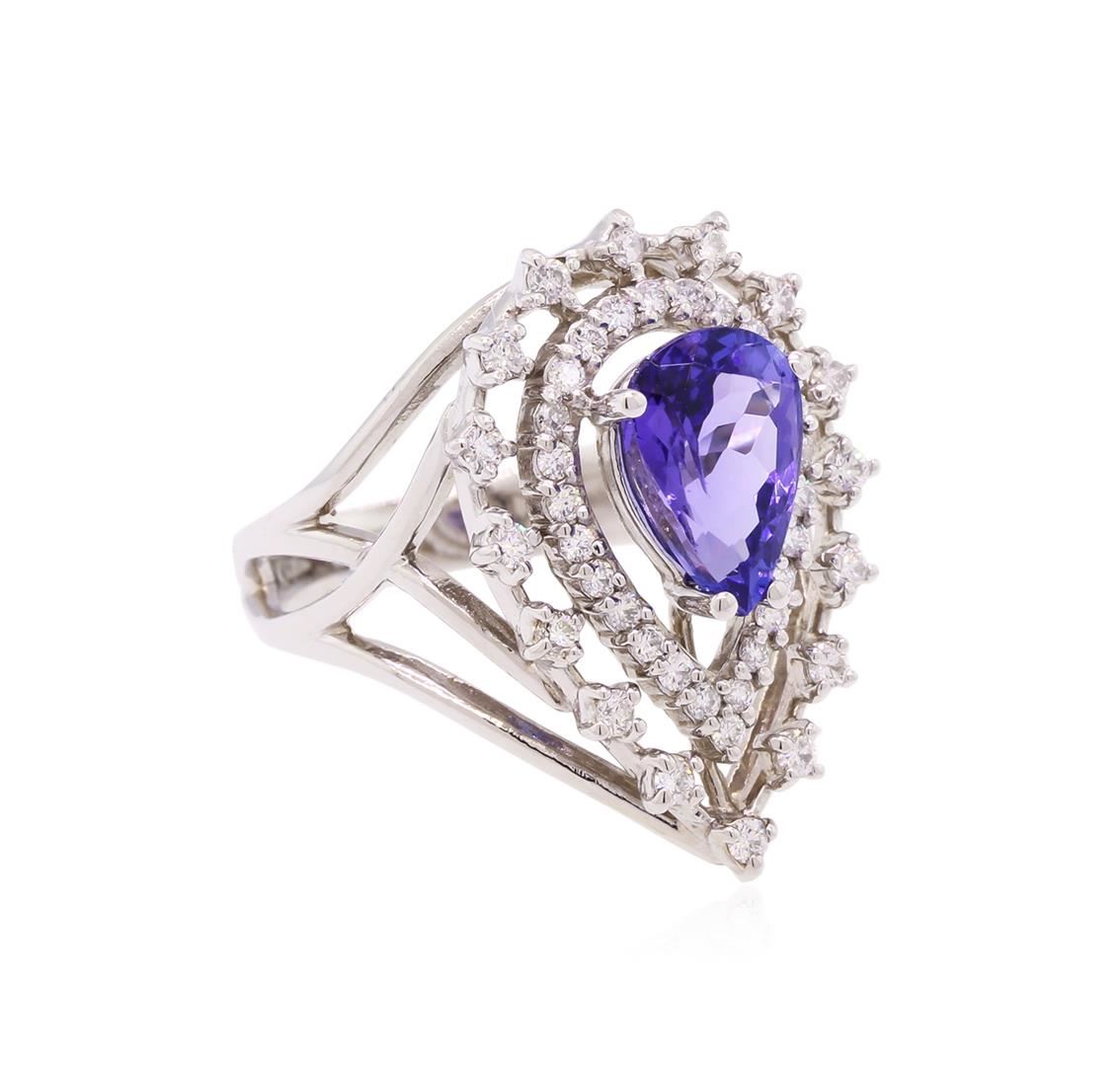 One ring featuring: 14KT white gold weighing 6.4 grams containing one tanzanite with a total weight of 2.01ct and 42 diamonds with a total weight of 0.54ct.