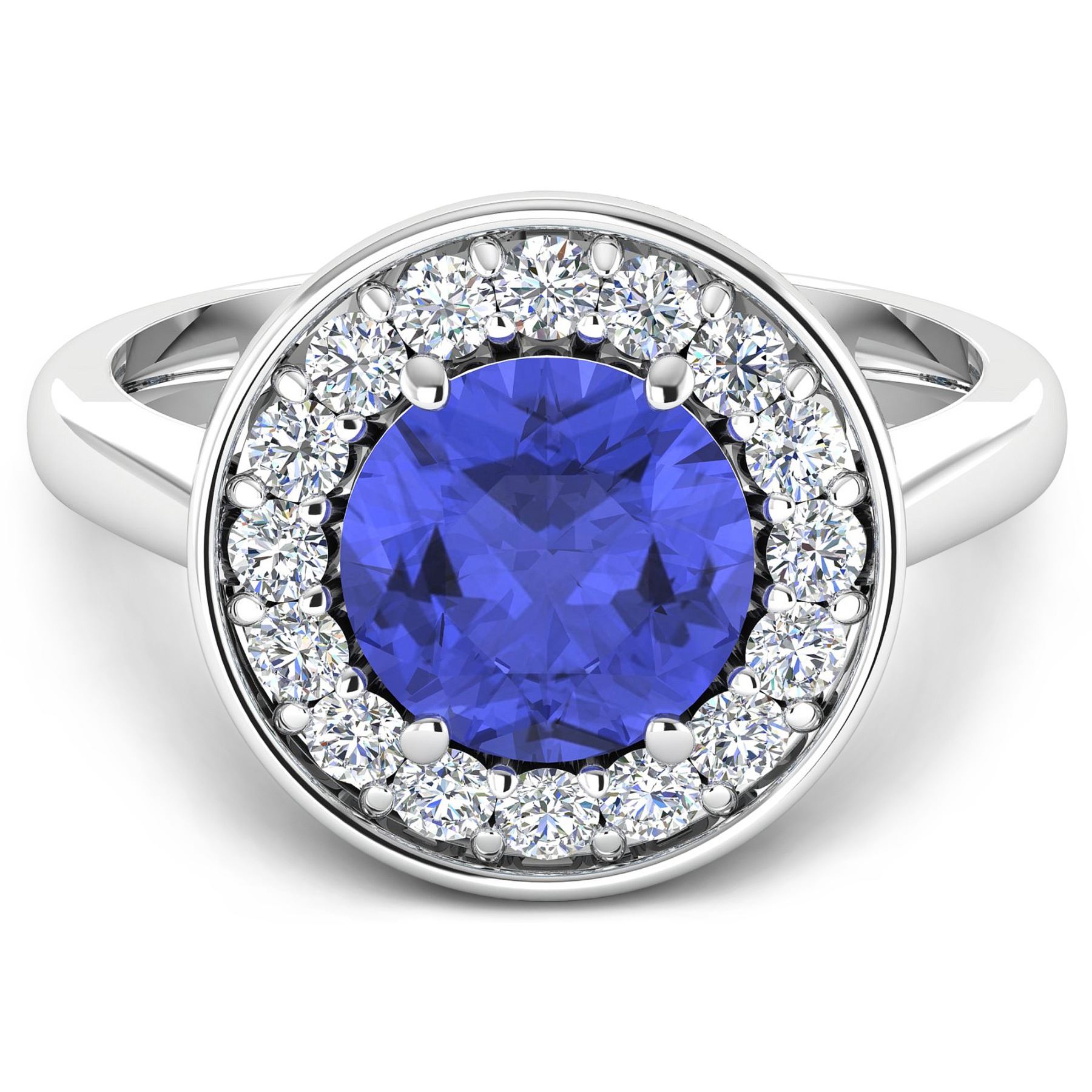 Tanzanite (AA+) Round 8.00mm - 1Pc + White Diamond F/C Round 2.00mm - 16Pcs ( Diamond Quality : SI-2/HI ). Total weight of gemstone is 2.02cts. Total weight of Diamonds is 0.48cts. Total weight of this ring is 4.23 grams. Ring size 7.