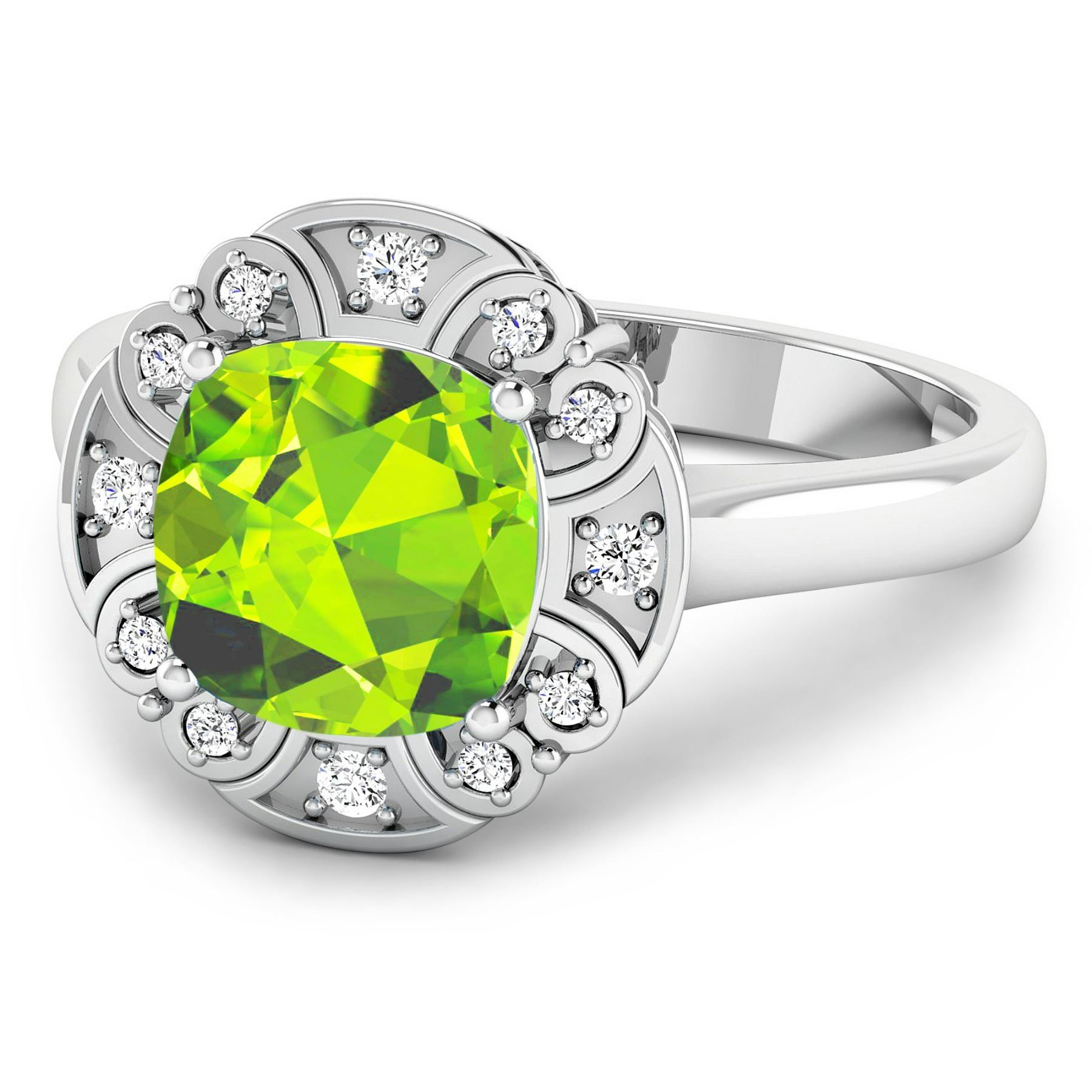 Peridot Cushion 8.00mm - 1Pc + White Diamond F/C Round 1.50mm - 4Pcs + White Diamond F/C Round 1.00mm - 8Pcs ( SI-2/HI ) Total weight of gemstone is 2.02cts. Total Diamond weight is 0.09cts. Total weight of this ring is 2.68 grams. Ring size 7.