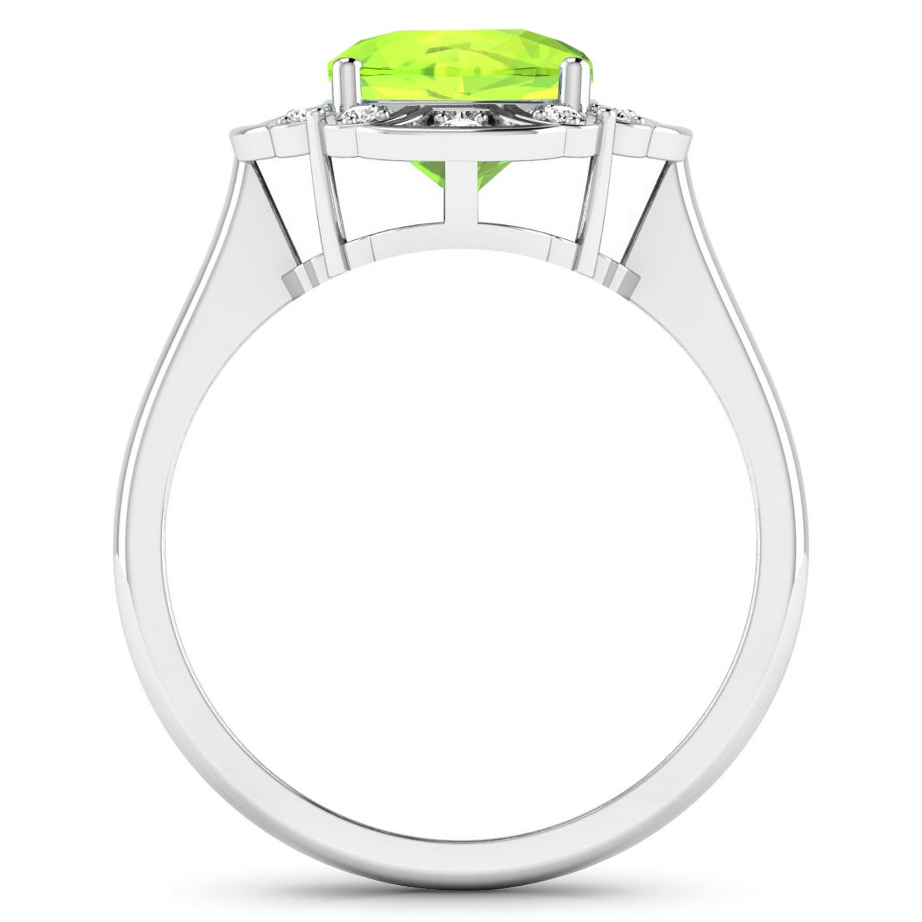 Peridot Cushion 8.00mm - 1Pc + White Diamond F/C Round 1.50mm - 4Pcs + White Diamond F/C Round 1.00mm - 8Pcs ( SI-2/HI ) Total weight of gemstone is 2.02cts. Total Diamond weight is 0.09cts. Total weight of this ring is 2.68 grams. Ring size 7.