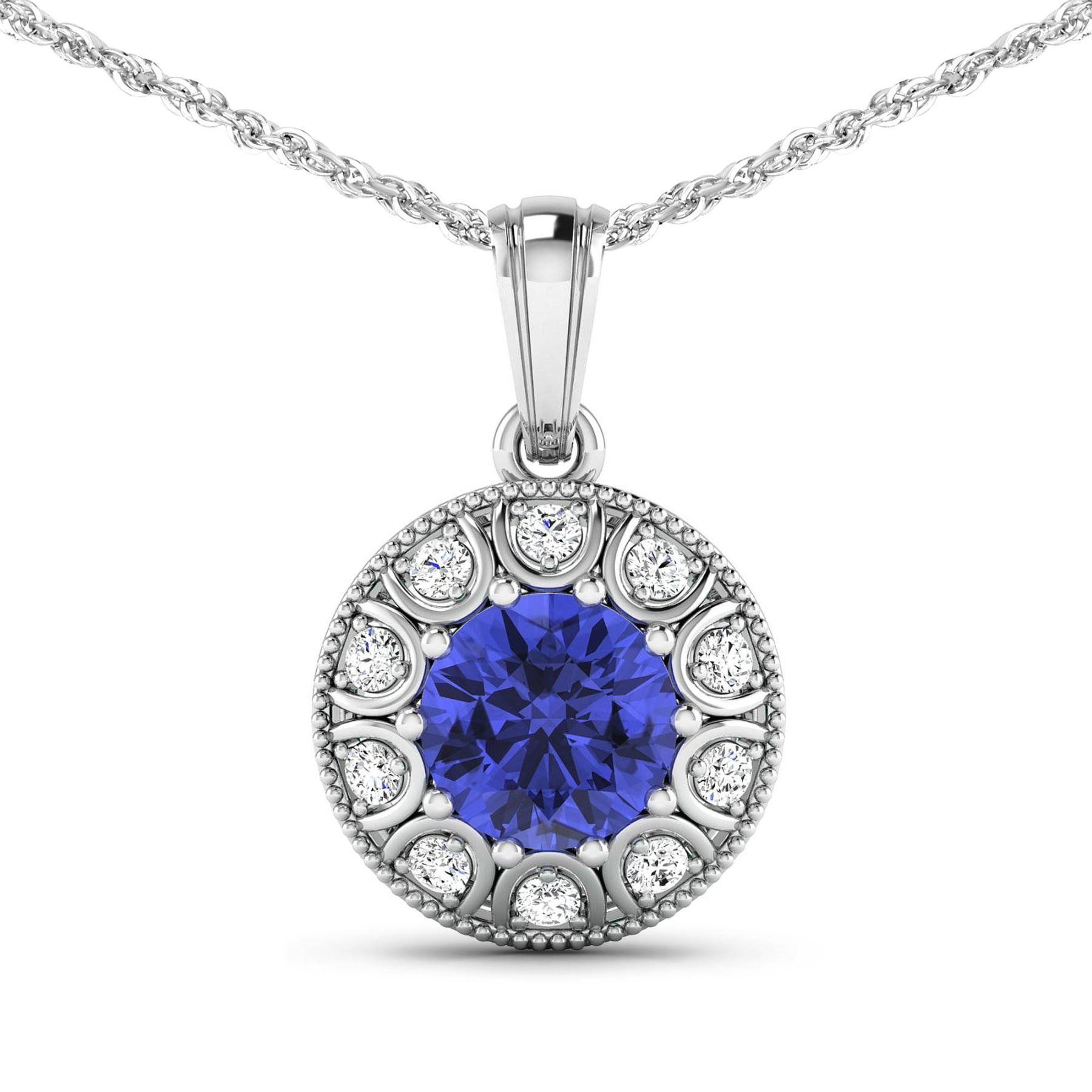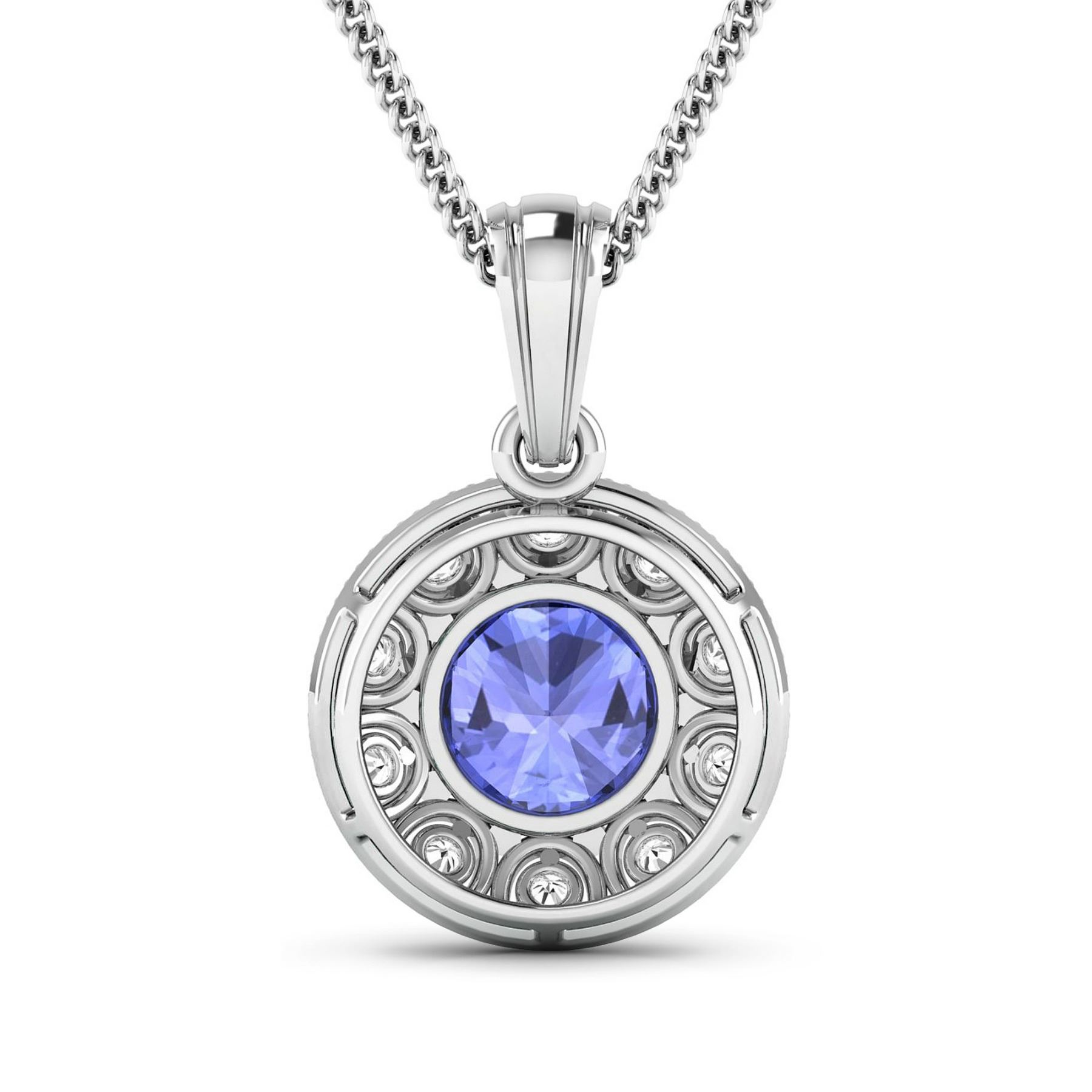 Tanzanite (AA+) Round 8.00mm - 1Pc + White Diamond F/C Round 2.00mm - 10Pcs ( SI-2/HI ) Total weight of gemstone is 2.02cts. Total Diamond weight is 0.3cts. Total weight of this pendant is 2.71 grams.