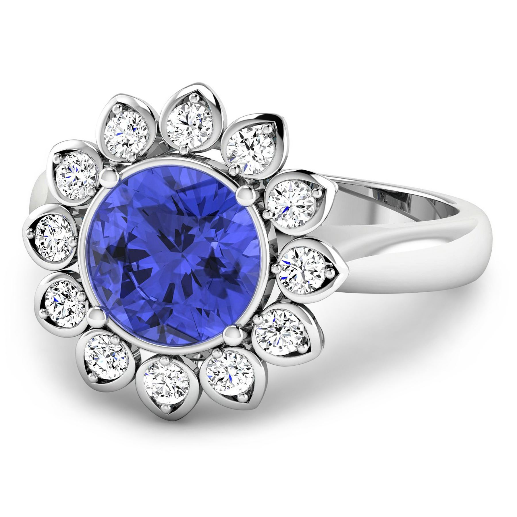 Tanzanite (AA+) Round 8.00mm - 1Pc + White Diamond F/C Round 2.00mm - 12Pcs ( SI-2/HI ) Total weight of gemstone is 2.02cts. Total Diamond weight is 0.36cts. Total weight of this ring is 3.34 grams. Ring size 7.