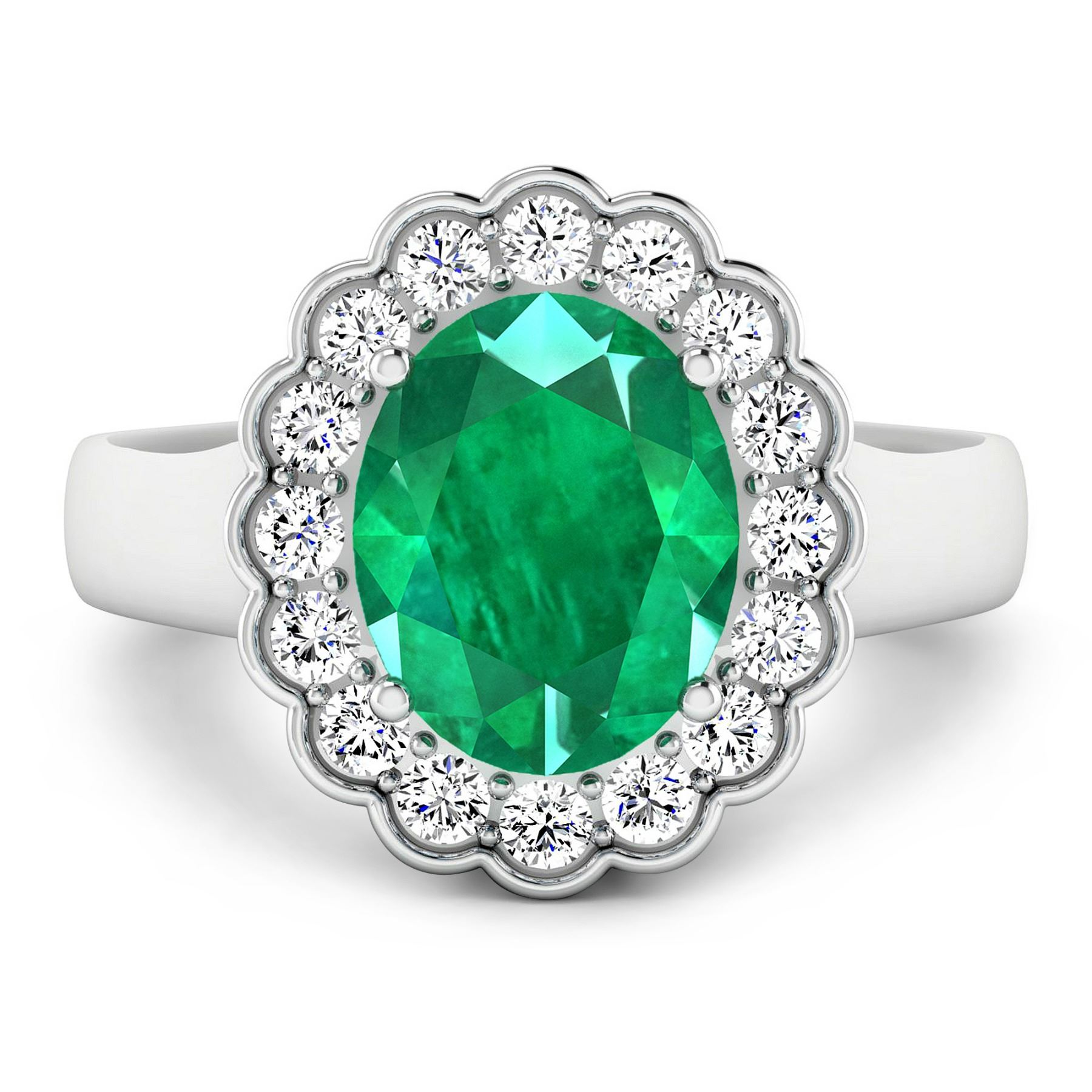 Zambian Emerald (AA) Oval 10x8mm - 1Pc + White Diamond F/C Round 2.00mm - 16Pcs ( SI-2/HI ) Total weight of gemstone is 2.03cts. Total Diamond weight is 0.48cts. Total weight of this ring is 3.93 grams. Ring size 7.
