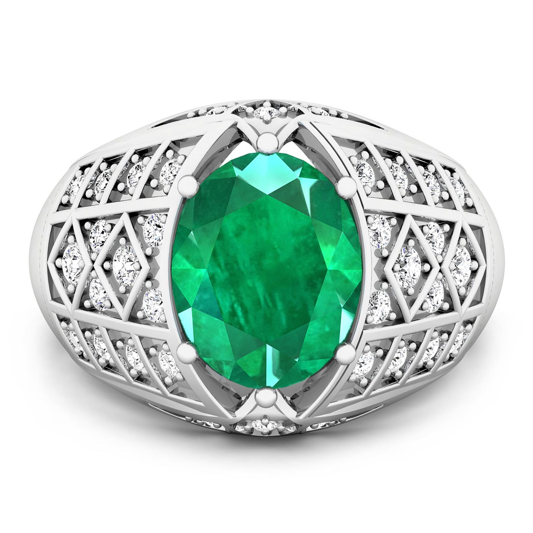 Zambian Emerald (AA) Oval 10x8mm - 1Pc + White Diamond F/C Round 1.80mm - 4Pcs + White Diamond F/C Round 1.50mm - 8Pcs + White Diamond F/C Round 1.30mm - 16Pcs + White Diamond F/C Round 1.20mm - 6Pcs ( SI-2/HI ) Total weight of gemstone is 2.03cts. Total Diamond weight is 0.42cts. Total weight of this ring is 4.66 grams. Ring size 7.