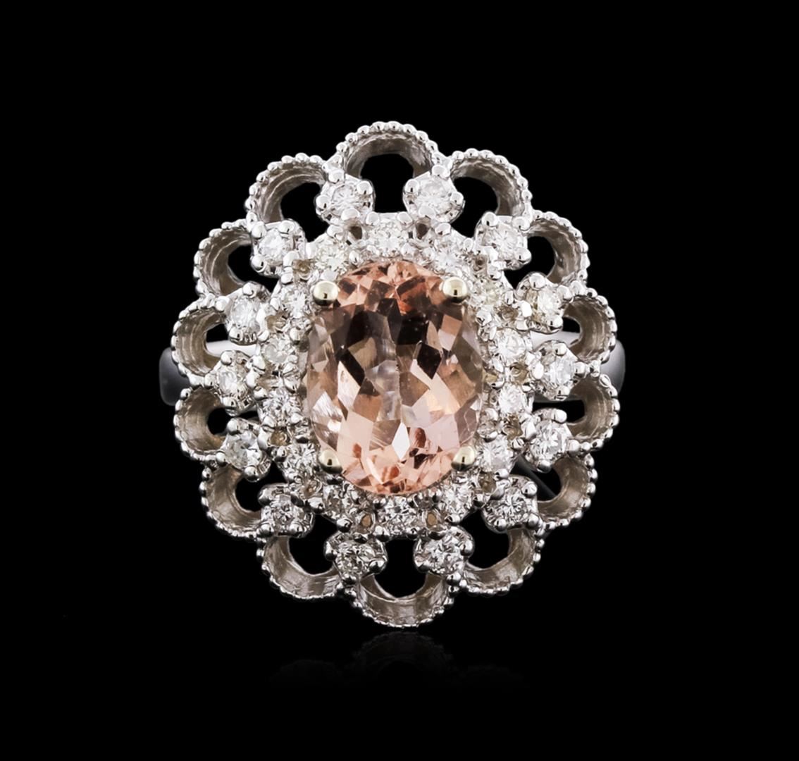 One ring featuring: 14KT white gold weighing a total of 8.25 grams containing one oval cut morganite center weighing 2.05ct and diamonds weighing a total of 0.58ct.