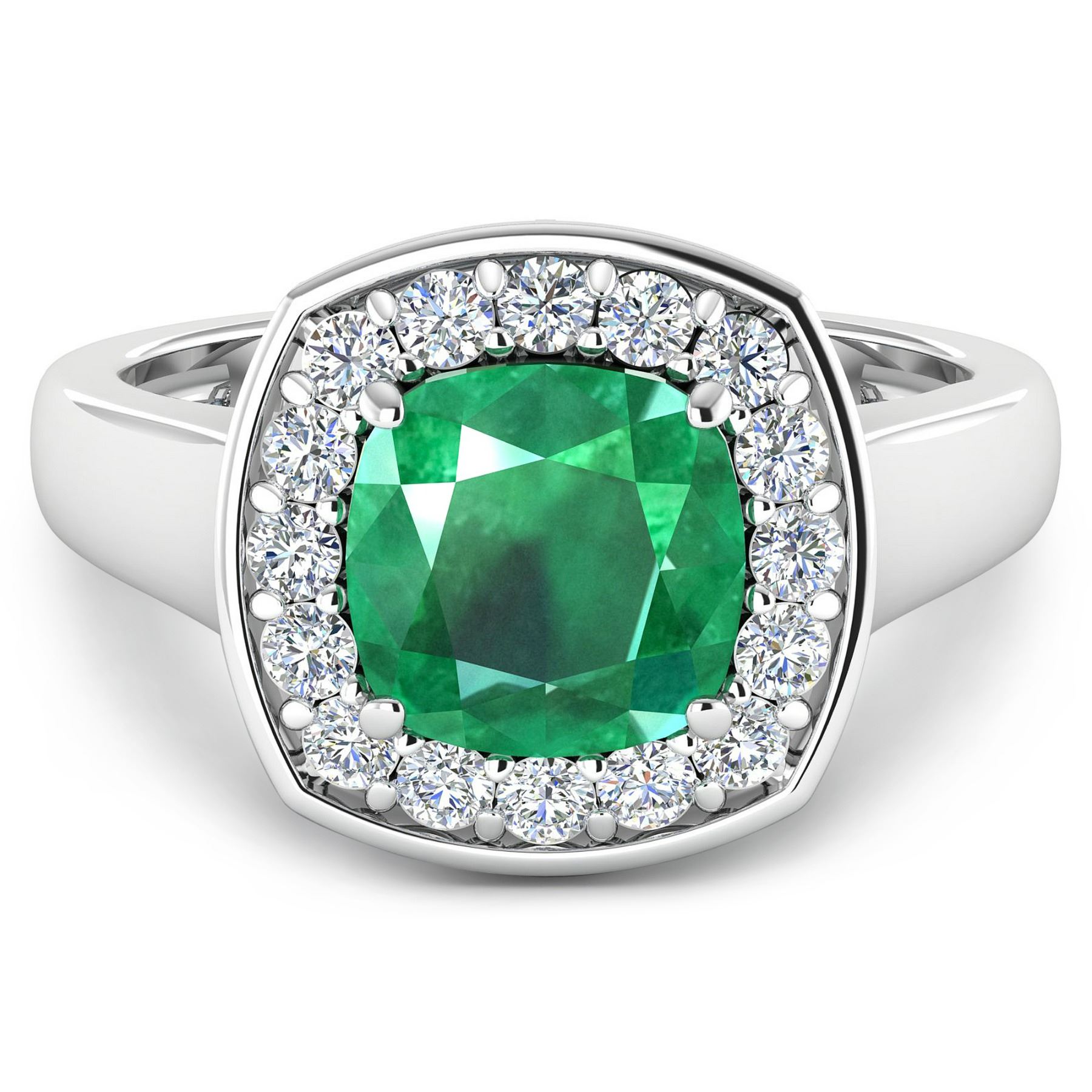 Zambian Emerald (AA) Cushion 8.00mm - 1Pc + White Diamond F/C Round 2.00mm - 16Pcs ( Diamond Quality : SI-2/HI ). Total weight of gemstone is 2.07cts. Total weight of Diamonds is 0.48cts. Total weight of this ring is 3.7 grams. Ring size 7.