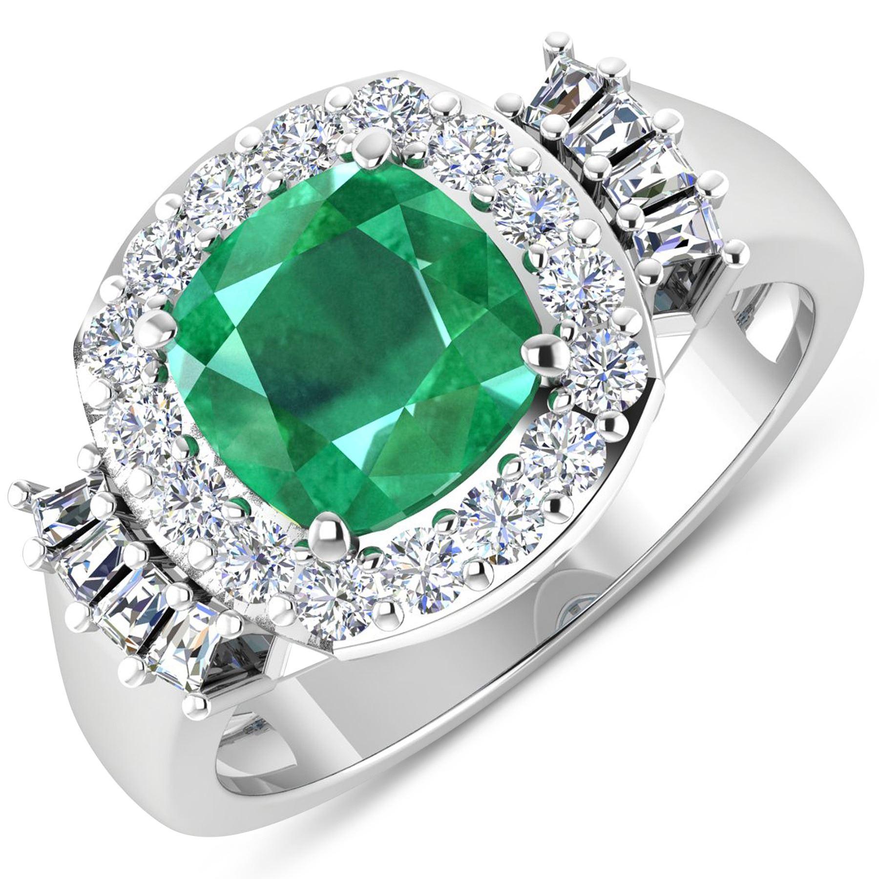 14KT White Gold 2.07ct Zambian Emerald and Diamond Ring