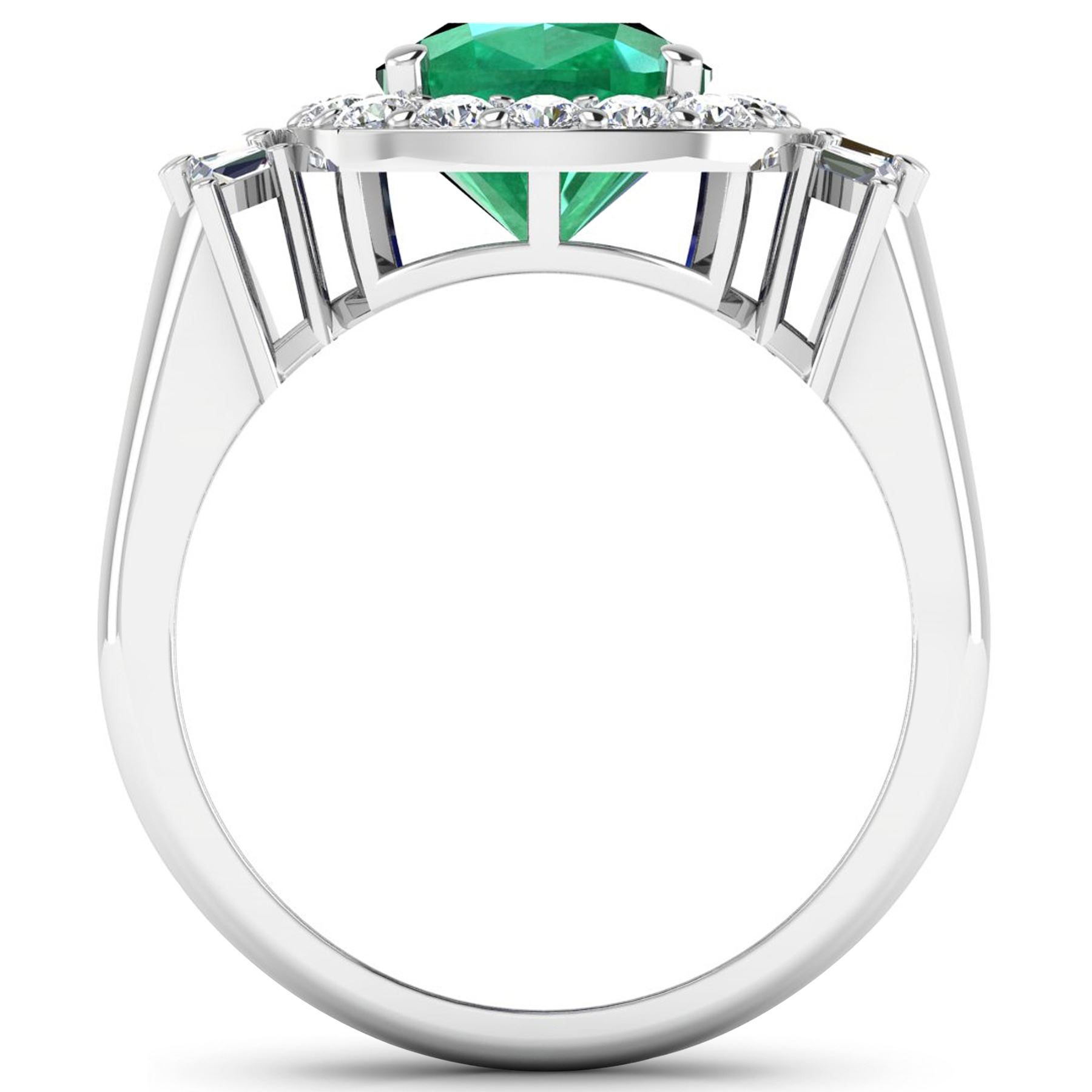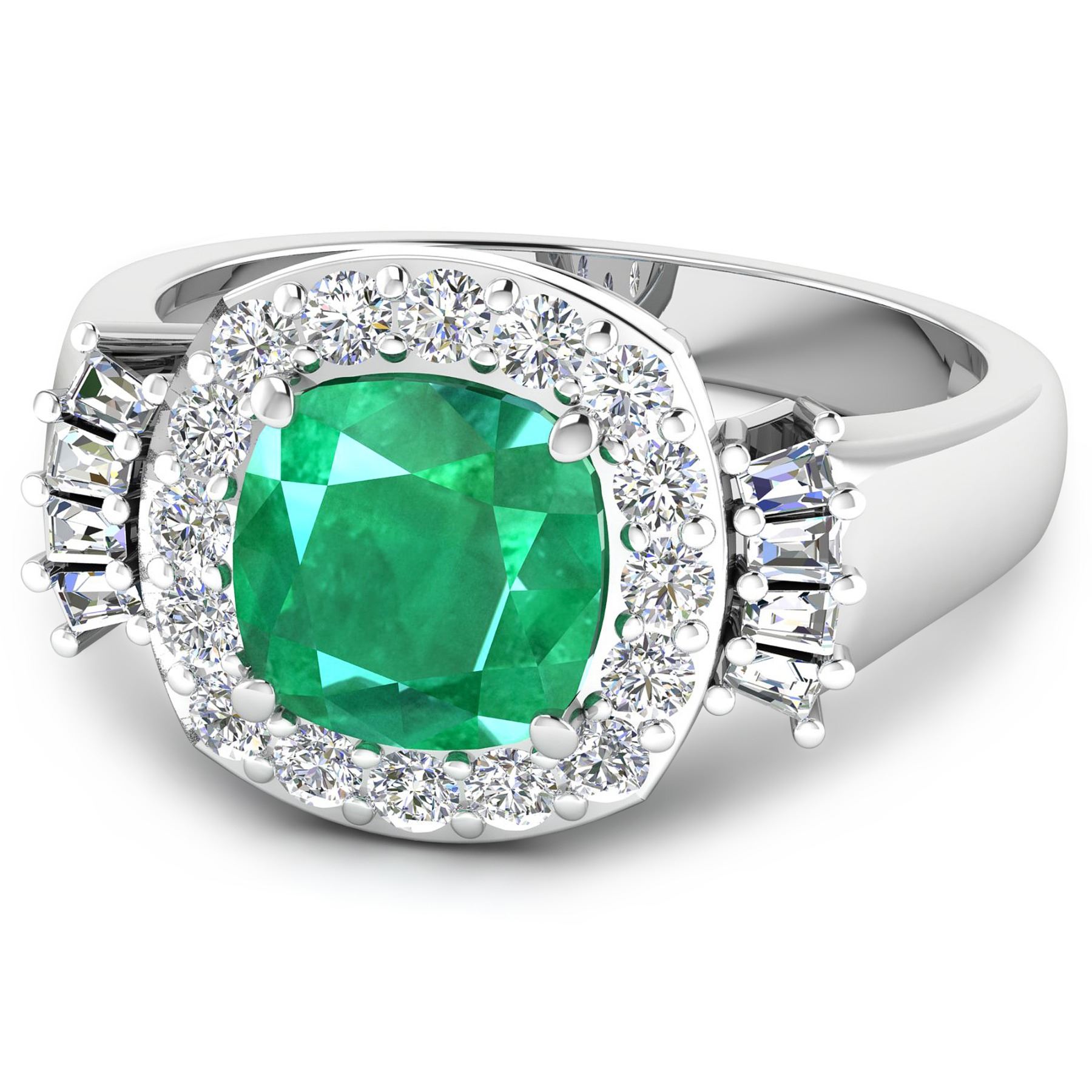 Zambian Emerald (AA) Cushion 8.00mm - 1Pc + White Diamond Tapper Baguette 2.00x1.50x1.10mm - 8Pcs + White Diamond F/C Round 2.00mm - 16Pcs ( Diamond Quality : SI-2/HI ). Total weight of gemstone is 2.07cts. Total weight of Diamonds is 0.73cts. Total weight of this ring is 4.59 grams. Ring size 7.