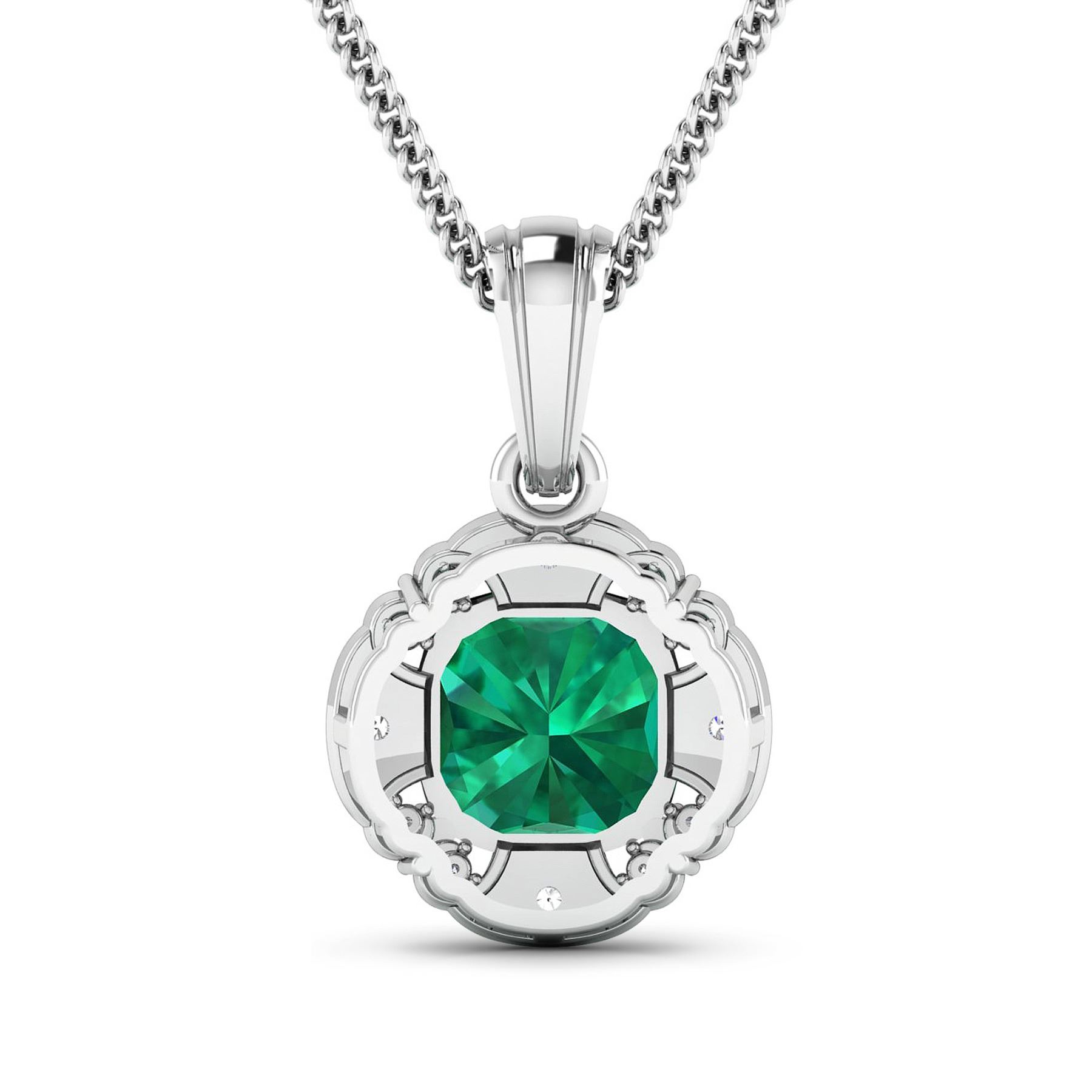 Zambian Emerald (AA) Cushion 8.00mm - 1Pc + White Diamond F/C Round 1.50mm - 4Pcs + White Diamond F/C Round 1.00mm - 8Pcs ( SI-2/HI ) Total weight of gemstone is 2.07cts. Total Diamond weight is 0.09cts. Total weight of this pendant is 2.49 grams.