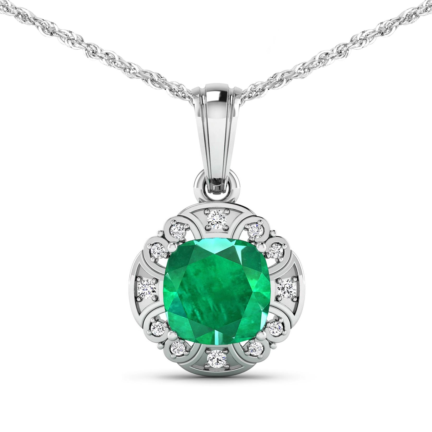 14KT White Gold 2.07ctw Zambian Emerald and Diamond Pendant