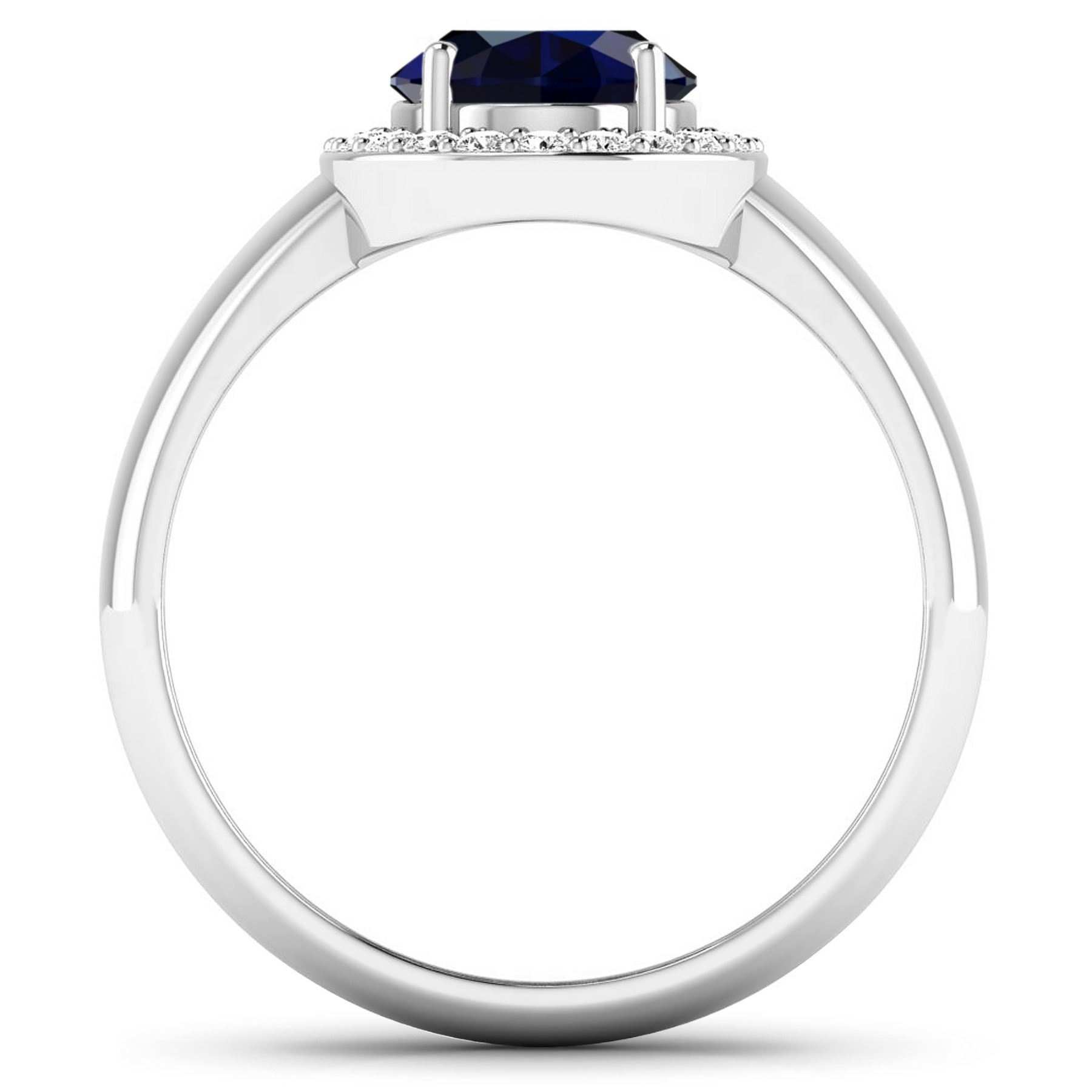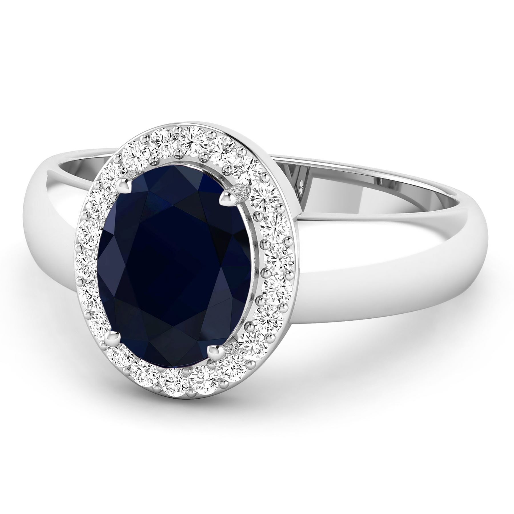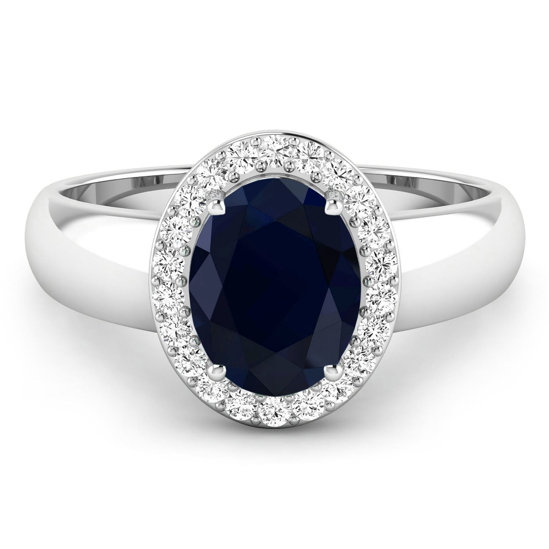 Blue Sapphire (AA) Oval 9x7mm - 1Pc + White Diamond F/C Round 1.30mm - 22Pcs (I1-I2/I color) ( With J Back ). Total weight of gemstone is 2.1cts. Total weight of Diamonds is 0.22cts. Total weight of this ring is 4.66 grams. Ring size 7.