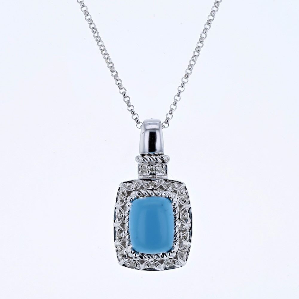 14KT White Gold 2.10ct Turquoise and Diamond Pendant with Chain