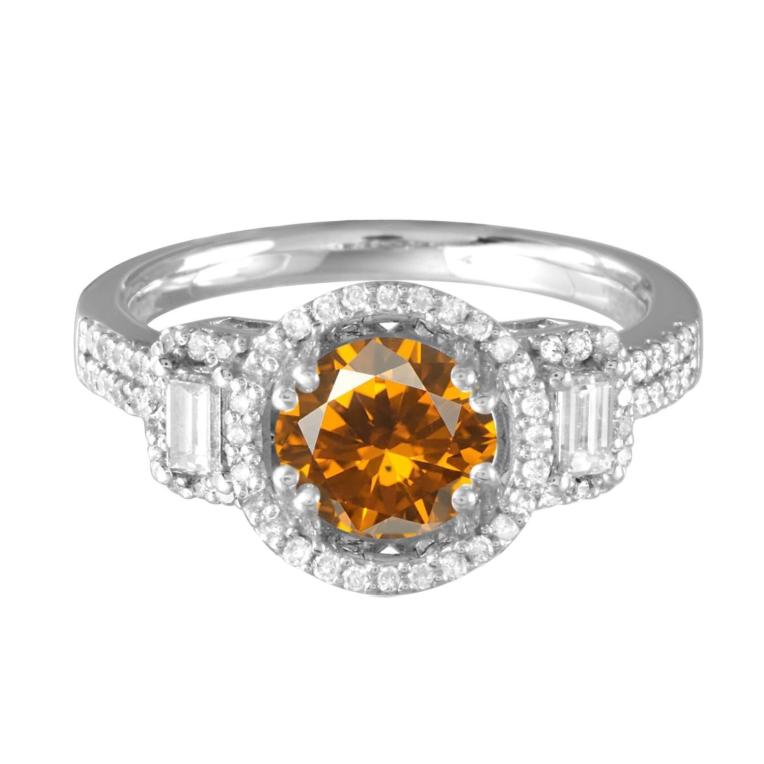 One 14KT White Gold 2.11ct Citrine and Diamond Ring. (1) Citrine stone with a total weight of 2.11cts. (72) Diamonds with a total weight of 0.56cts with a color of H-I and a clarity of SI-2. Total weight of this ring is 4.75 grams. Ring size is 6.5.