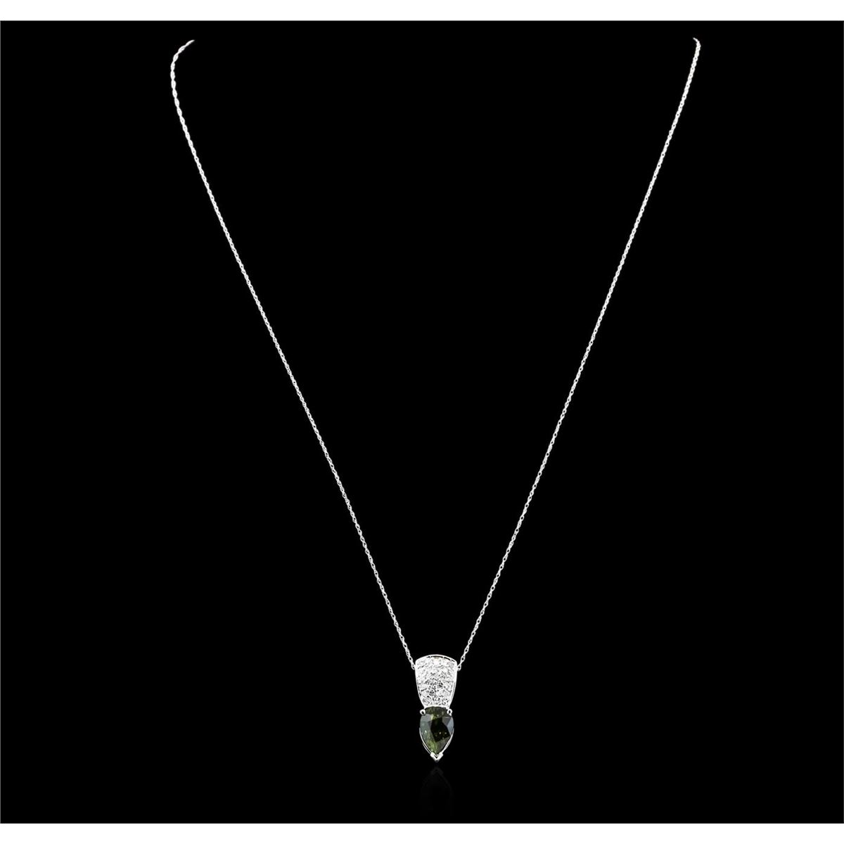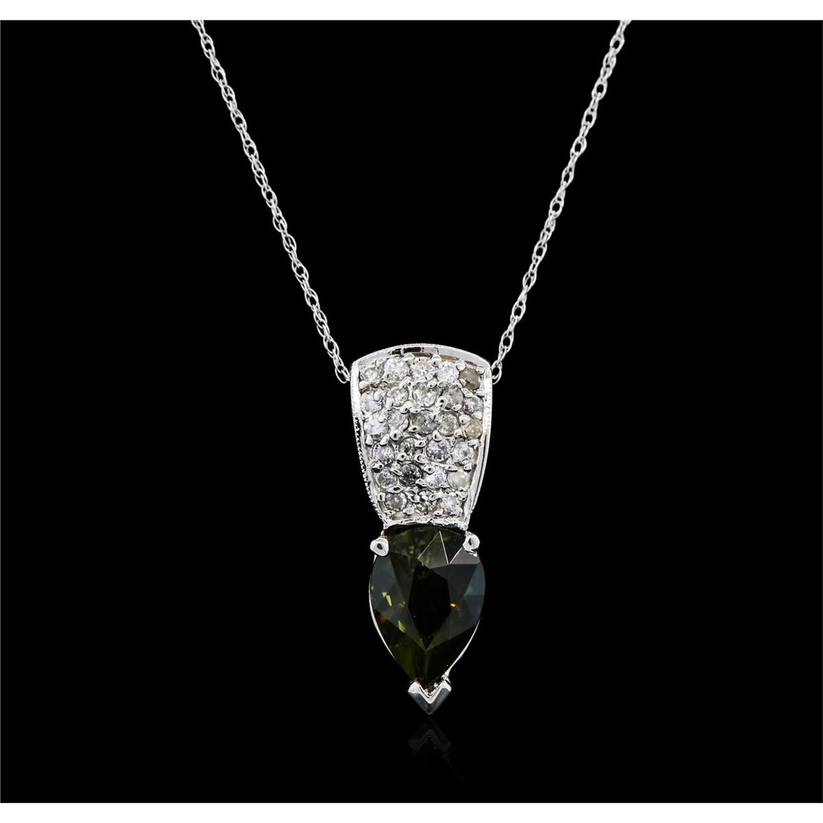 One pendant with chain featuring: 14KT white gold weighing 3.24 grams containing one green tourmaline with a total weight of 2.12ct and round diamonds with a total weight of 0.28cts.