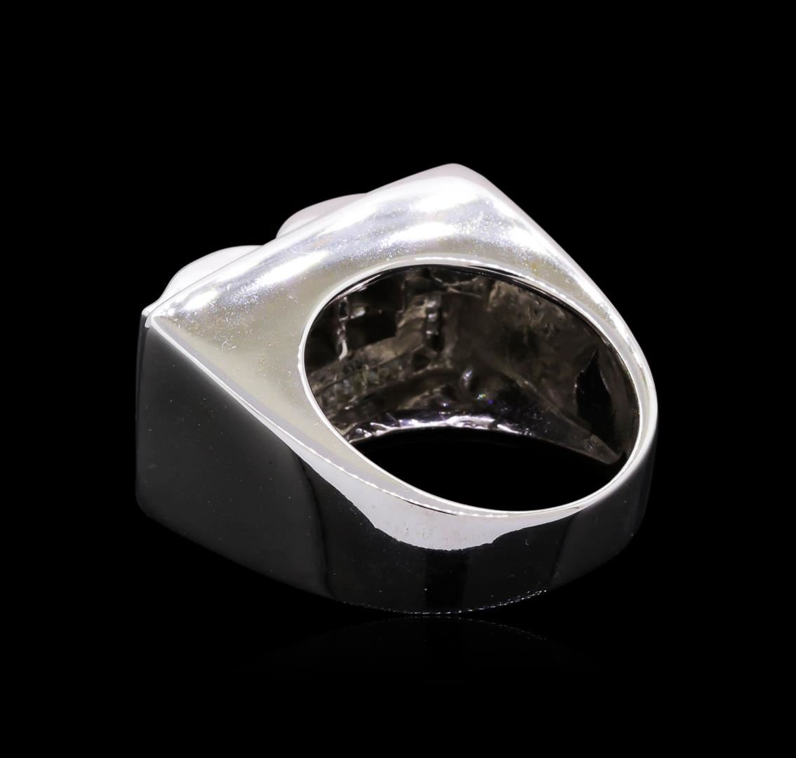 One electronically tested 14KT white gold man's combination cast & assembled ring with a bright polish finish. Condition is new. Identified with markings of "14K". Containing: Forty pave' set princess cut diamonds, measuring 2.00 x 1.70 x 1.28mm (depth est.) approximate. Total Weight of 40 Stones = 1.42ct. Clarity: SI-1 to I-1. Color: H - J, Cut is Good. Sixty-Four channel set baguette cut diamonds, measuring 1.50 x 1.00 x 0.85mm (depth est.) approximate. Total Weight of 64 Stones = 0.74ct. Clarity: SI-1 to I-1. Color: H - I, Cut is Good. Total Weight of Diamonds 2.17ct. Total Weight of Ring 21.50gm. GGL Appraised at $12,270.00.