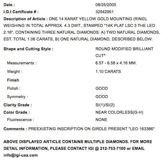 Regarding Appraised Jewelry, Watches and Loose Stones