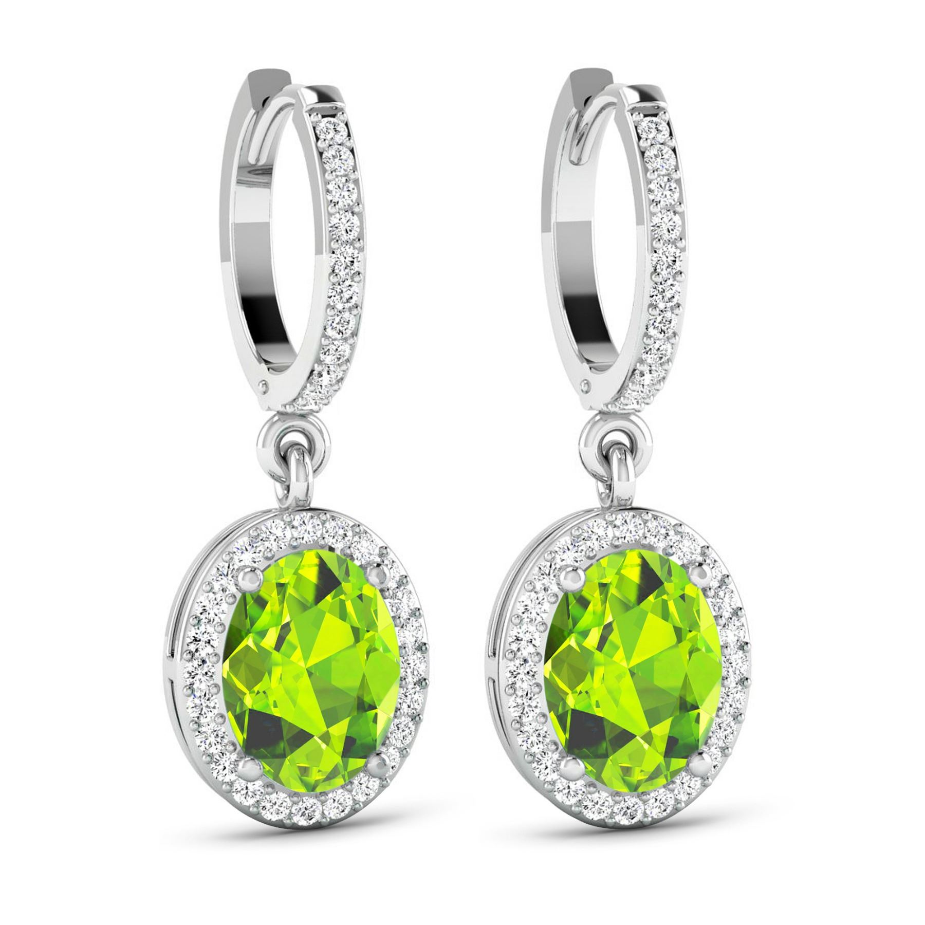 Peridot Oval 8x6mm - 2Pcs + White Diamond F/C Round 1.00mm - 70Pcs ( Clip On ) ( I1-I2/I color ) Total weight of gemstones is 2.1cts. Total Diamond weight is 0.32cts. Total weight of these earrings are 3.28 grams.