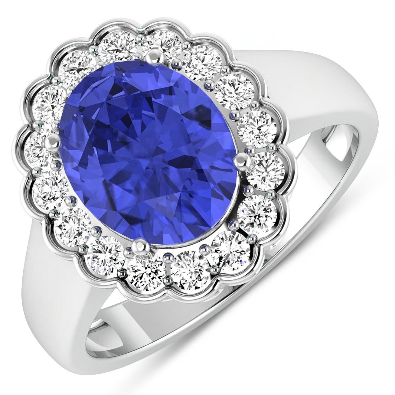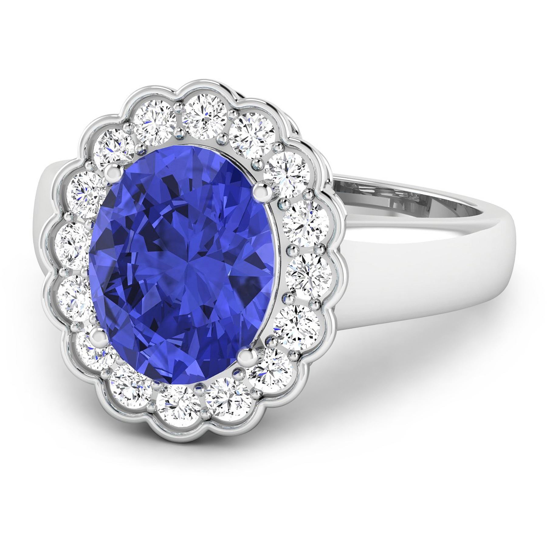 Tanzanite (AA+) Oval 10x8mm - 1Pc + White Diamond F/C Round 2.00mm - 16Pcs ( SI-2/HI ) Total weight of gemstone is 2.21cts. Total Diamond weight is 0.48cts. Total weight of this ring is 3.97 grams. Ring size 7.