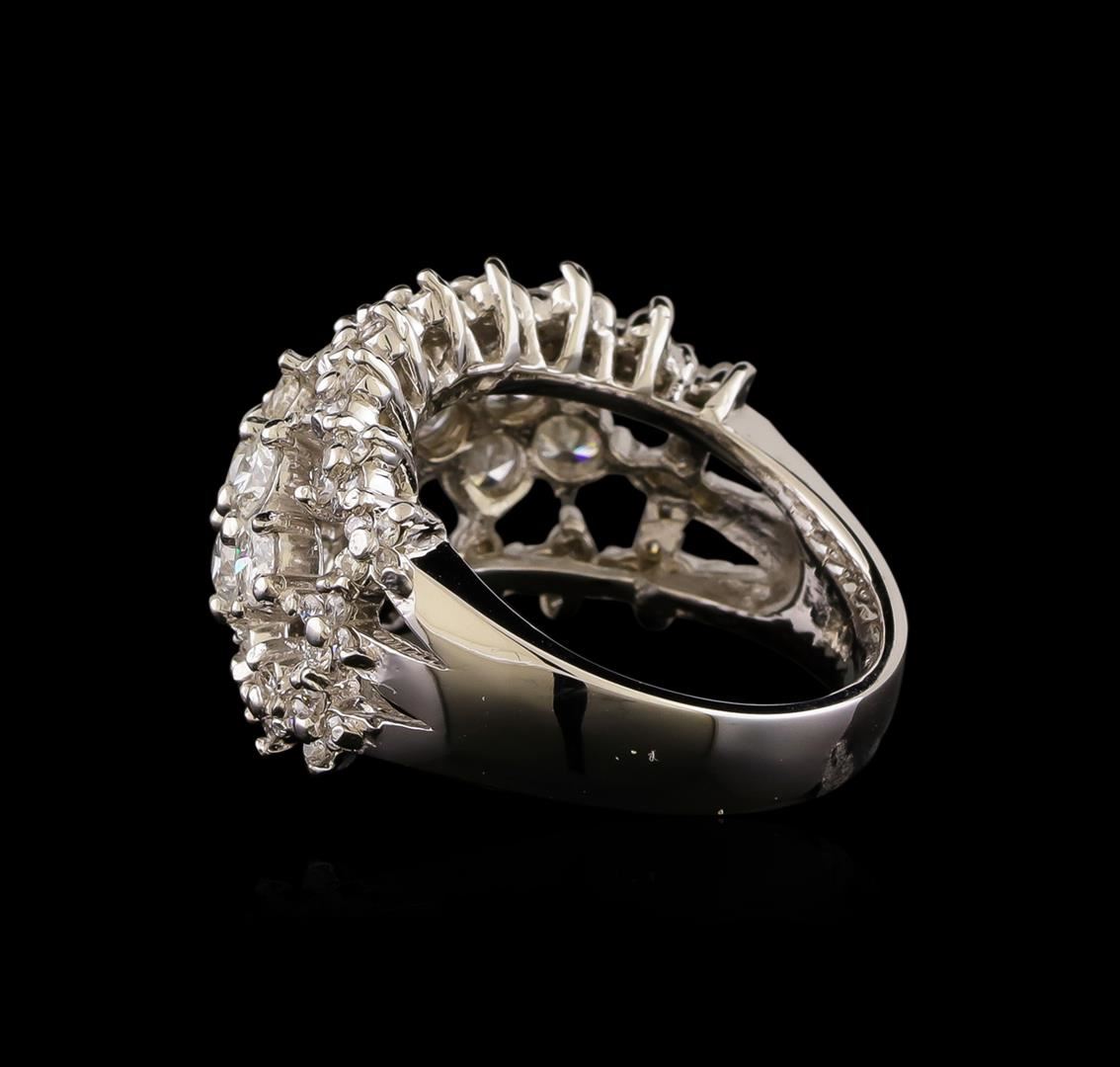 One electronically tested 14KT white gold ladies combination cast & assembled diamond ring with a bright polish finish. Identified with markings of "K14". Condition is new. Containing: Eighty prong set round brilliant cut diamonds, measuring 1.30 - 1.30 x 0.78mm (depth est.) approximate total weight of 80 Stones = 0.64ct. Clarity: I-1. Color: I - J, Cut is Good. Sixteen prong set round brilliant cut diamonds, measuring 3.50 - 2.50 x 1.80mm (depth est.) approximate total weight of 16 Stones = 1.58ct. Clarity: SI-2 to I-1. Color: H - I, Cut is Good. All diamonds are graded in the mounting, unless otherwise stated. Total Weight of Diamonds 2.22ct. Total Weight of Ring 9.50 grams. GGL Appraised.