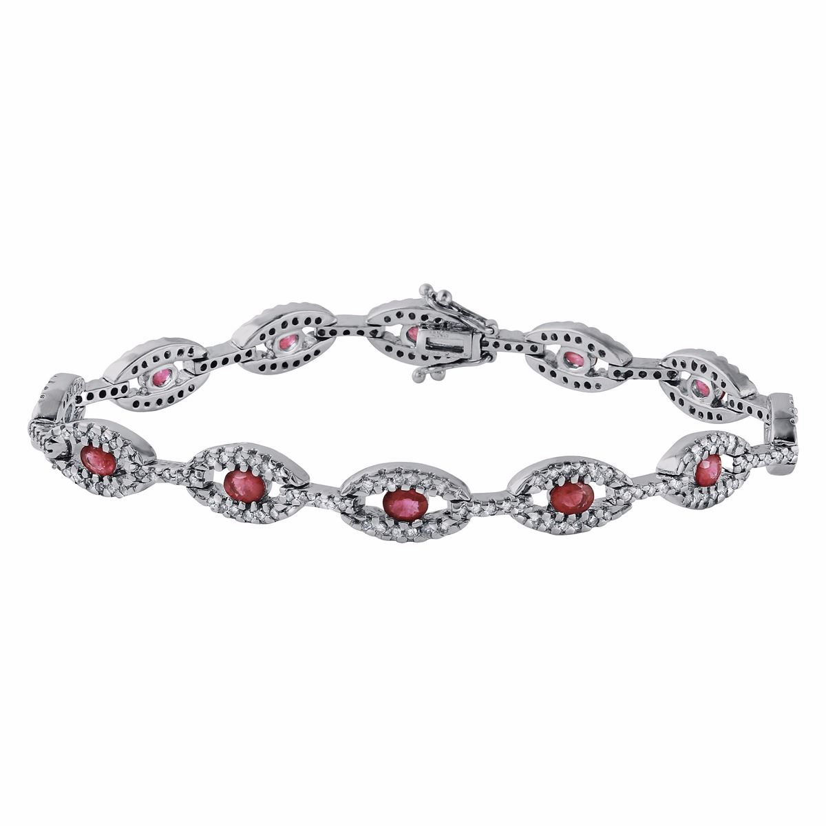One 14KT White Gold 2.28ctw Ruby and Diamond Bracelet. (12) Rubies with a total weight of 2.25cts. (204) Diamonds with a total weight of 1.44cts. Length of this bracelet is 7 inches. The total weight of this bracelet is 15.5 grams.