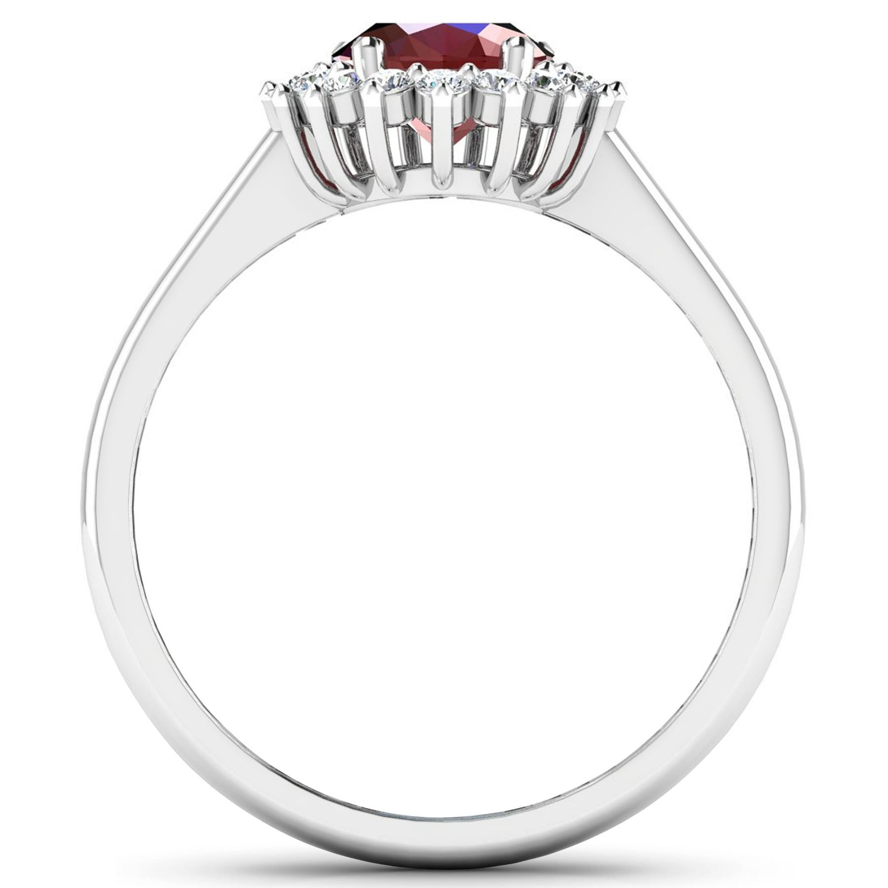 1 Ruby with a total weight of 2.30cts. Ruby (AA) Oval 9x7mm - 1Pc + White Diamond F/C Round 1.40mm - 20Pcs (I1-I2/I color). 0.22cts of Diamonds. Total weight of this ring is 2.75 grams. Ring size 7.