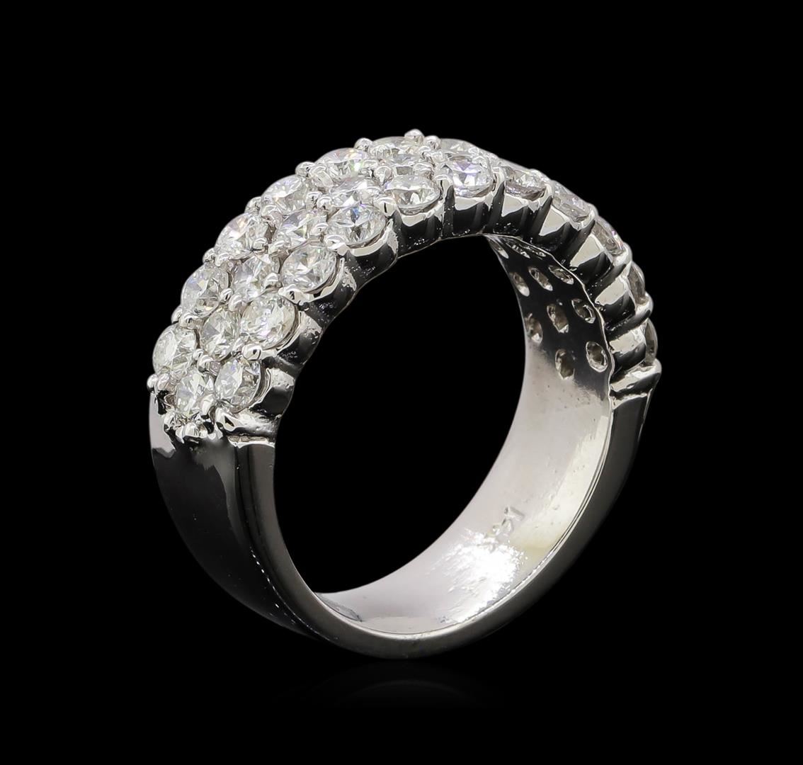 One electronically tested 14KT white gold ladies cast diamond ring with a flat shank with rounded edges with a bright polish finish. Identified with markings of "14K". Condition is new. Containing: Thirty-Four prong set round brilliant cut diamonds, measuring 2.50 - 2.50 x 1.50mm (depth est.) approximate total weight of 34 Stones = 2.31ct. Clarity: SI-1 to I-1. Color: H - J, Cut is Good. Diamonds are graded in the mounting, unless otherwise stated. Total Weight of Diamonds 2.31ct. Total Weight of Ring 9.10 grams. GGL Appraised at $4,430.00.