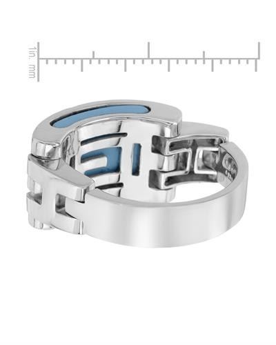 14KT White Gold 2.32ct Turquoise and Diamond Ring. (1) Turquoise stone with a total weight of 2.32cts. (32) round Diamonds with a total weight of 0.34cts with a color of I and clarity of I-1. Total weight of this ring is 8.21 grams.