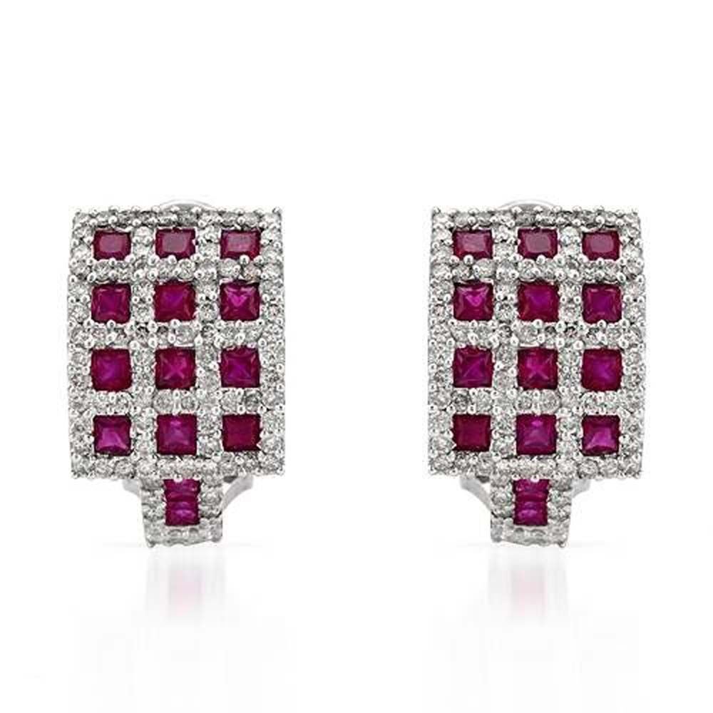 One 14KT White Gold 2.39ctw Ruby and Diamond Earrings. (28) Rubies with a total weight of 2.39cts. (188) Diamonds with a total weight of 1.52cts. Total weight of these earrings are 7.84 grams.