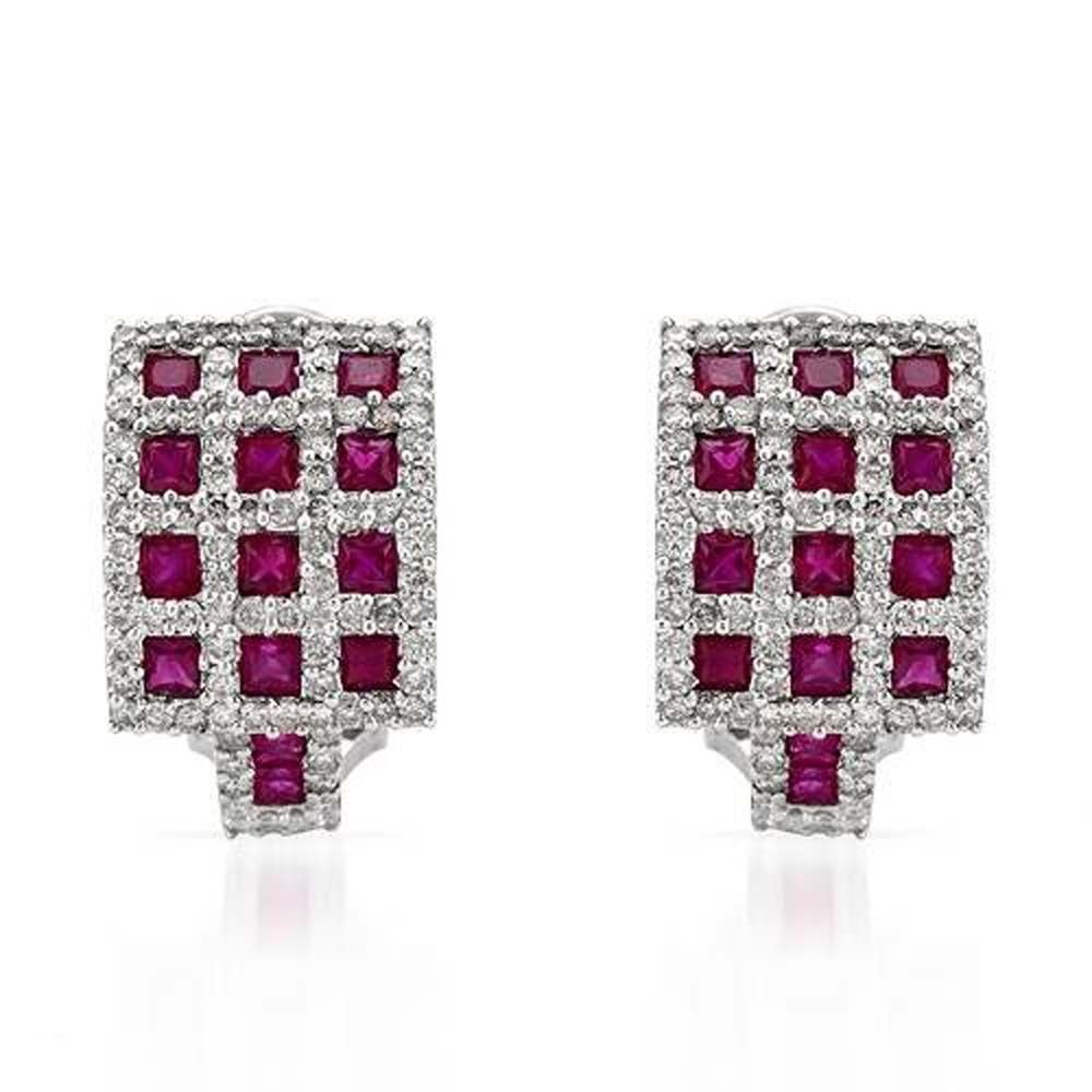 One 14KT White Gold 2.39ctw Ruby and Diamond Earrings. (28) Rubies with a total weight of 2.39cts. (188) Diamonds with a total weight of 1.52cts. Total weight of these earrings are 7.84 grams.