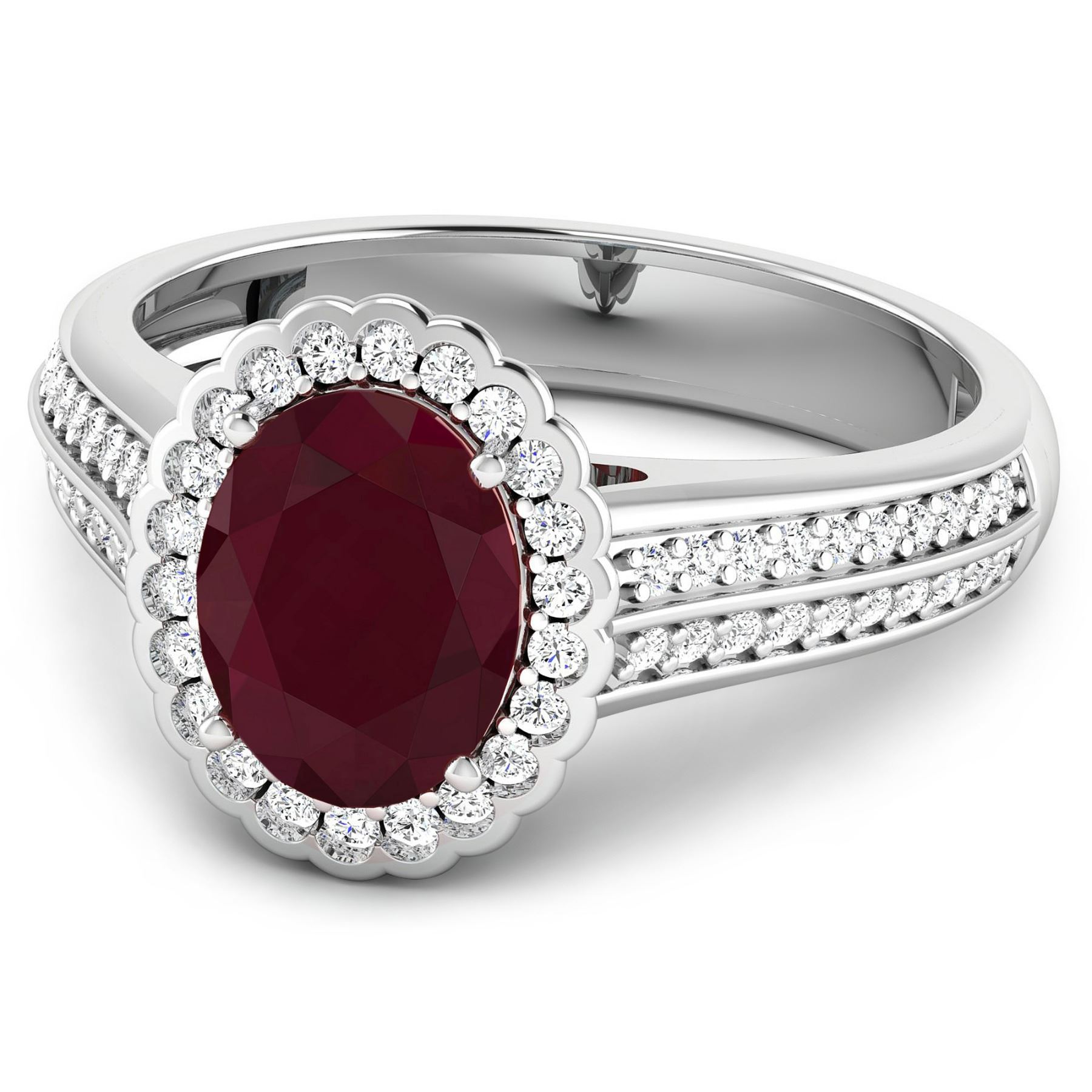 Ruby (AA) Oval 9x7mm - 1Pc + White Diamond F/C Round 1.20mm - 30Pcs + White Diamond F/C Round 1.10mm - 20Pcs + White Diamond F/C Round 1.00mm - 12Pcs (I1-I2/I color). Total weight of gemstone is 2.3cts. Total weight of Diamonds is 0.42cts. Total weight of this ring is 3.73 grams. Ring size 7.