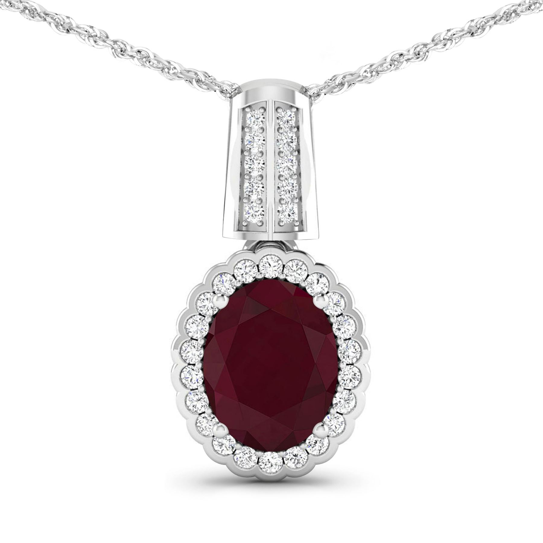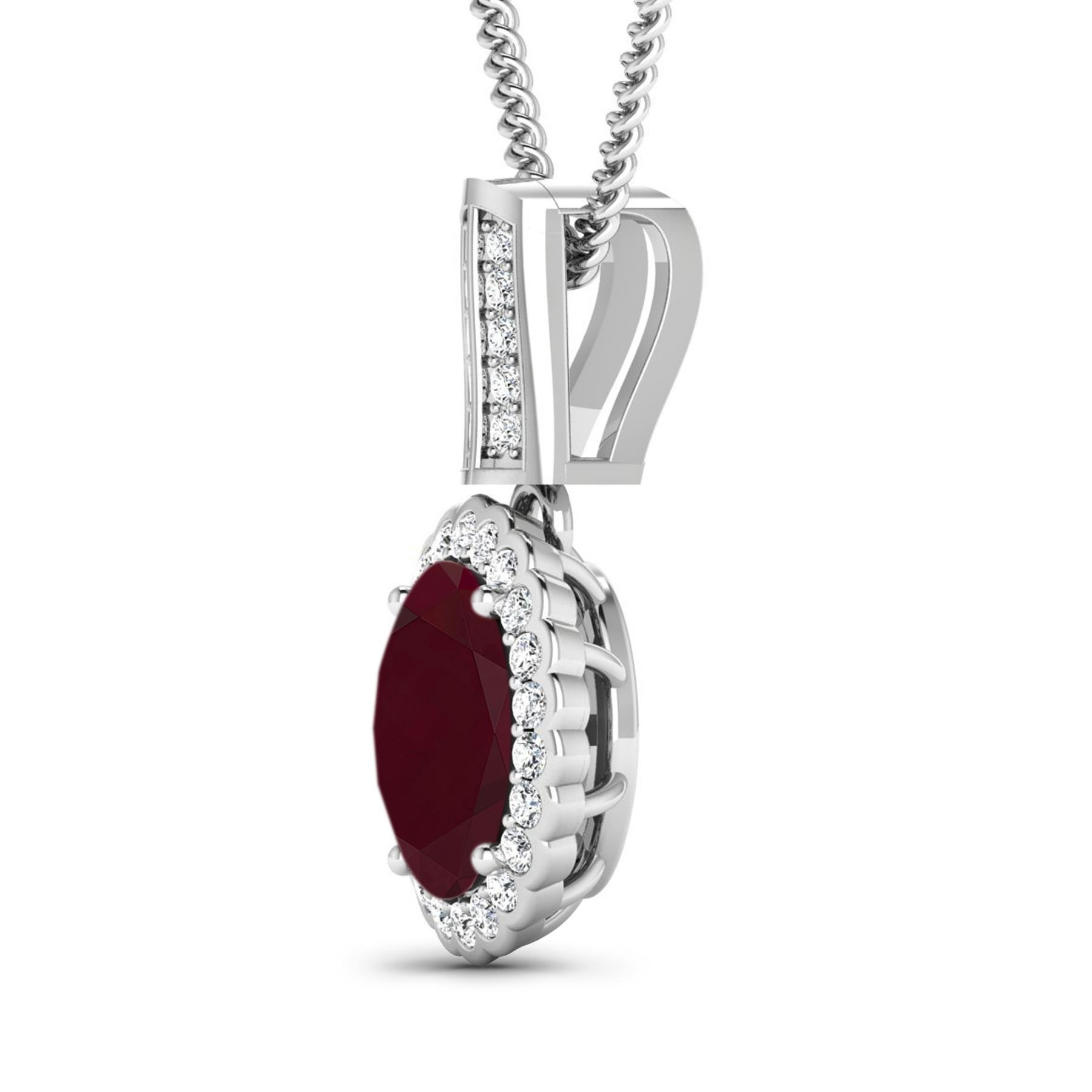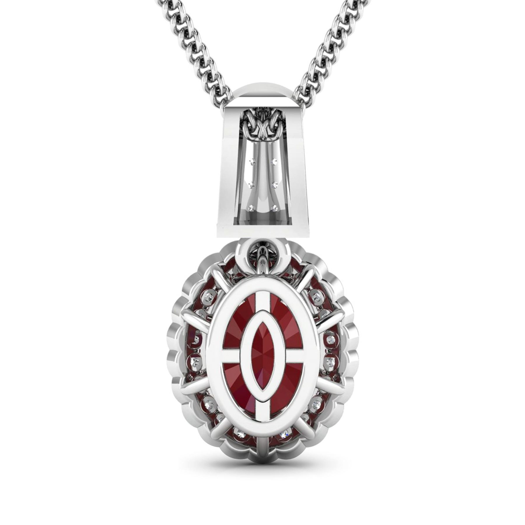 Ruby (AA) Oval 9x7mm - 1Pc + White Diamond F/C Round 1.20mm - 22Pcs + White Diamond F/C Round 1.00mm - 10Pcs (I1-I2/I color) Total weight of gemstone is 2.3cts. Total Diamond weight is 0.22cts. Total weight of this pendant is 2.44 grams.