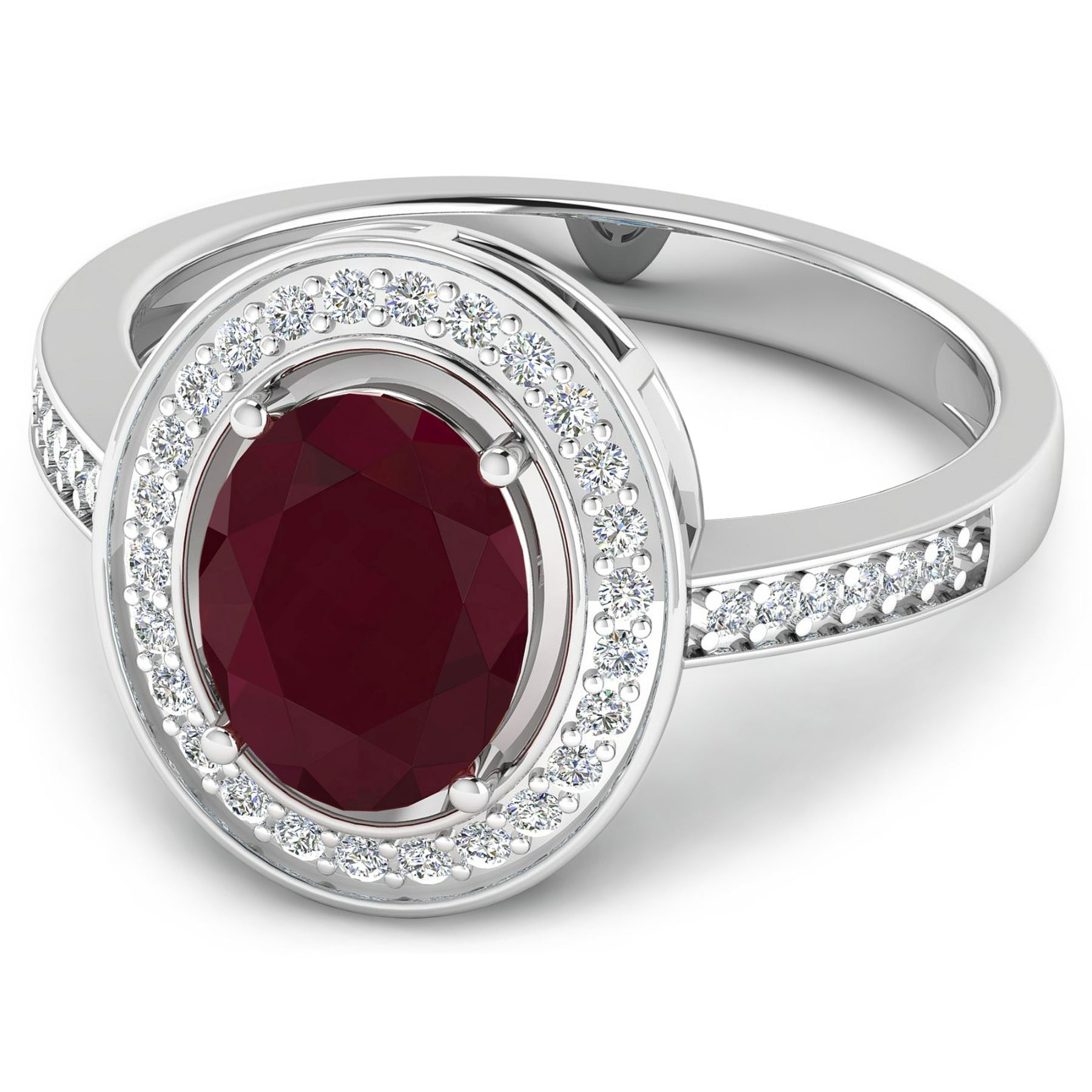 Ruby (AA) Oval 9x7mm - 1Pc + White Diamond F/C Round 1.10mm - 26Pcs + White Diamond F/C Round 1.00mm - 12Pcs (I1-I2/I color) Total weight of gemstone is 2.3cts. Total Diamond weight is 0.22cts. Total weight of this ring is 3.42 grams. Ring size 7.