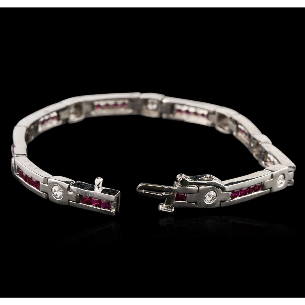 One bracelet featuring: 14KT white gold weighing 17.90 grams containing princess cut rubies with a total weight of 2.40ct and round diamonds with a total weight of 0.54ct.
