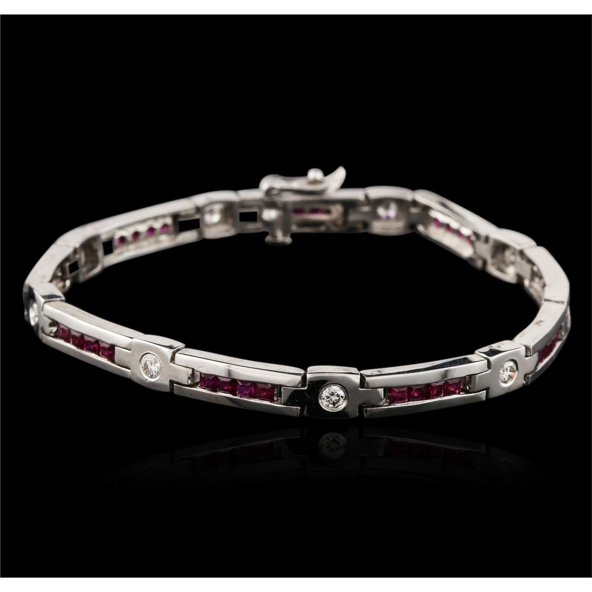 One bracelet featuring: 14KT white gold weighing 17.90 grams containing princess cut rubies with a total weight of 2.40ct and round diamonds with a total weight of 0.54ct.