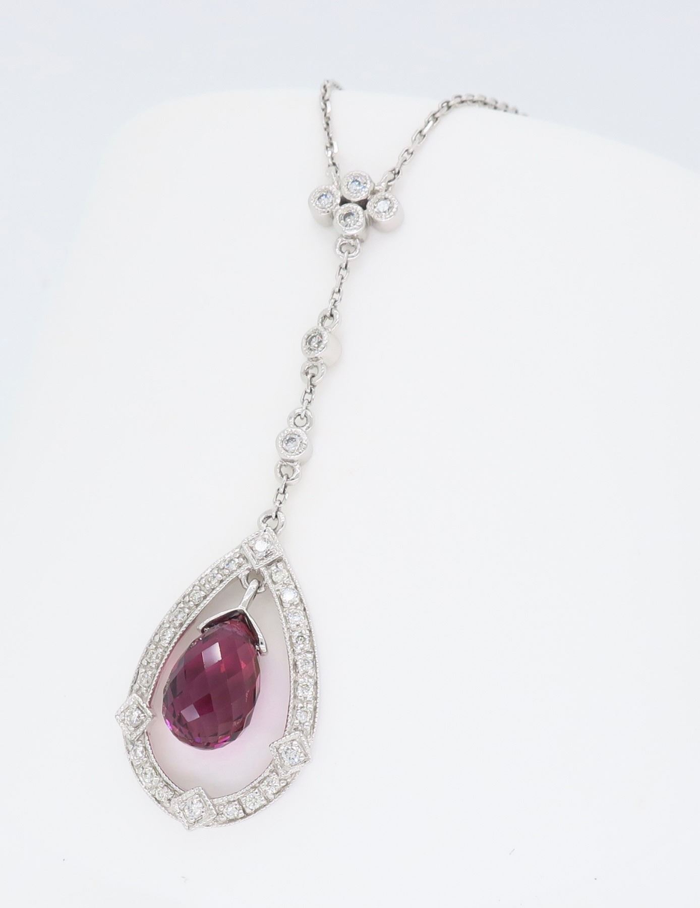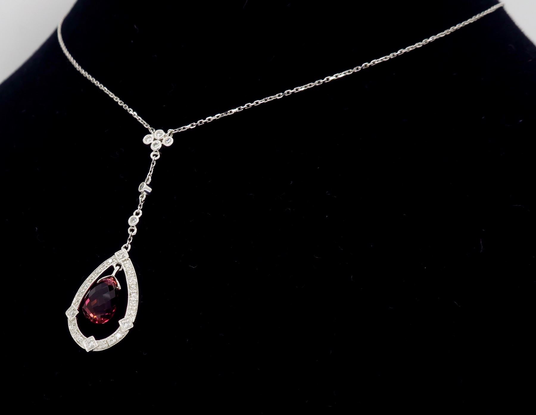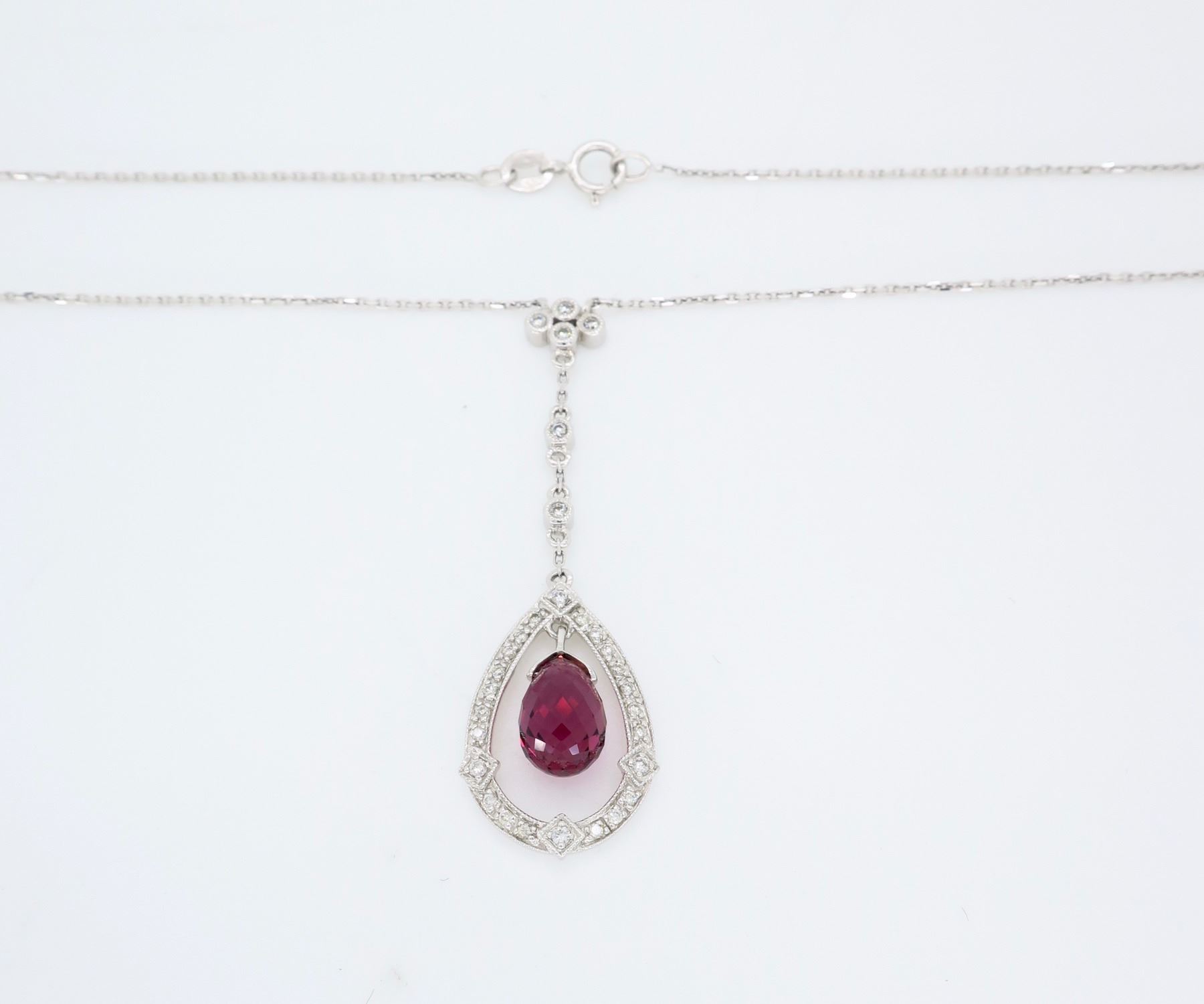 14KT White Gold 2.43ct Pink Tourmaline and Diamond Pendant with Chain