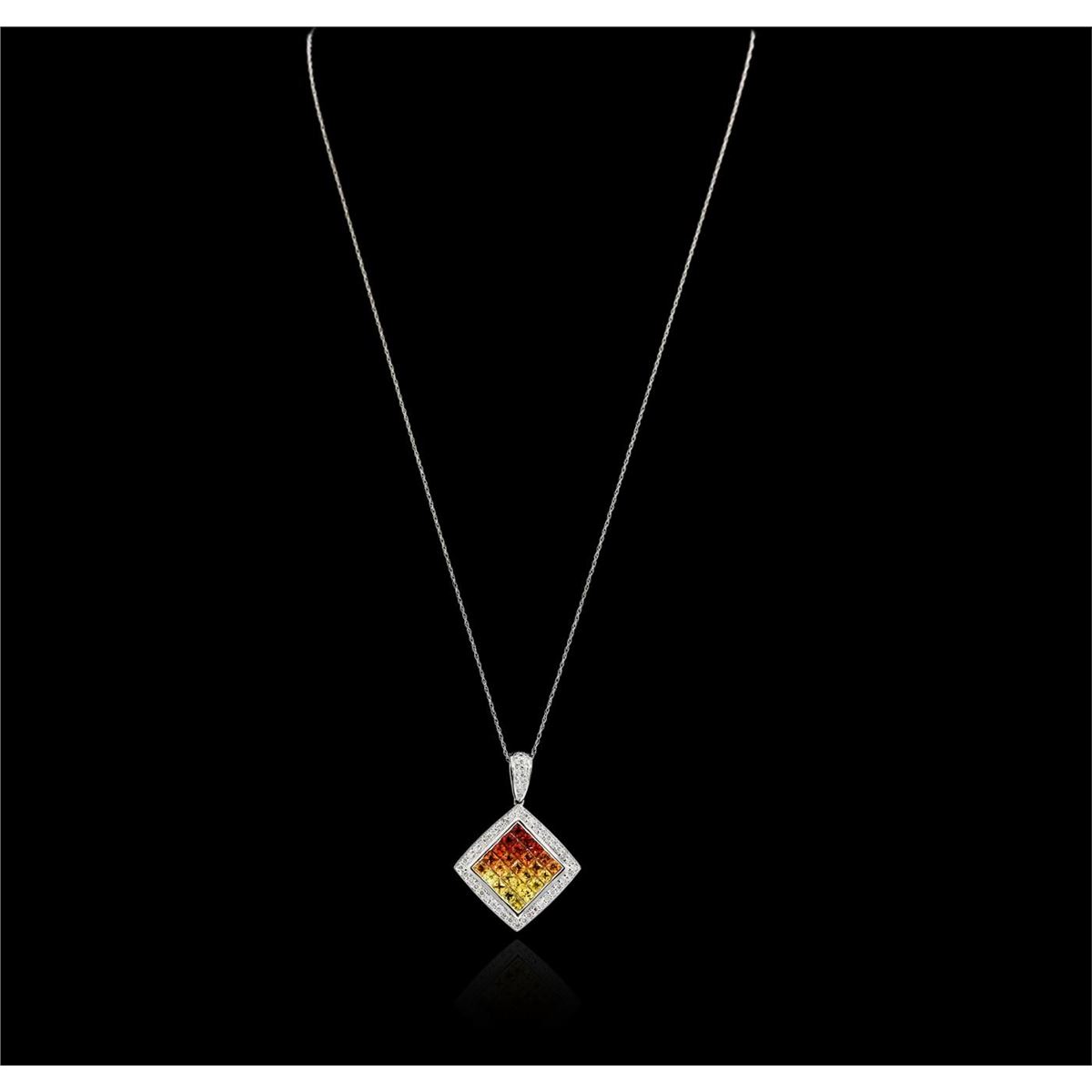 One pendant with chain featuring: 14KT white gold weighing 5.90 grams containing multicolor sapphires with a total weight of 2.45ct and diamonds with a total weight of 0.40ct.