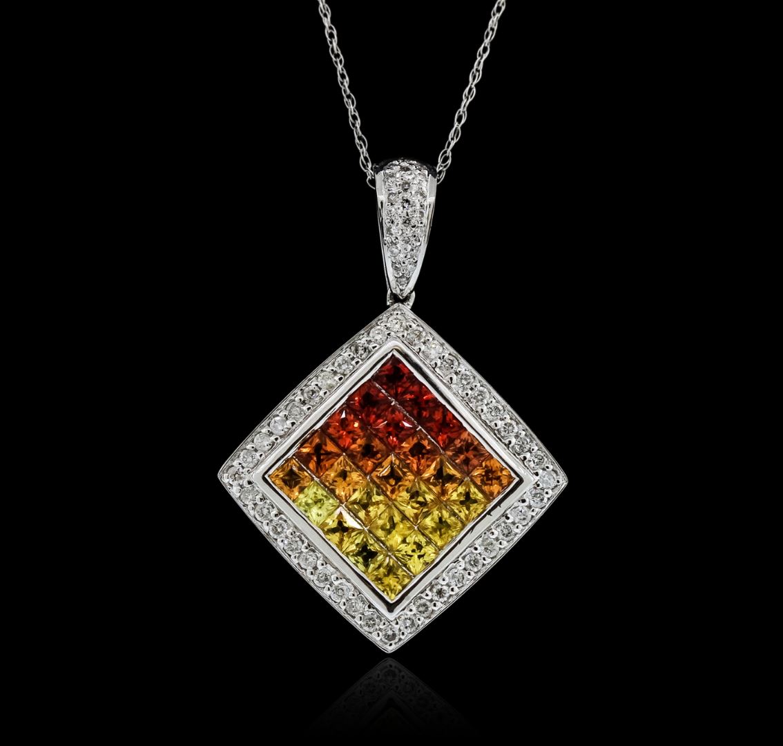 One pendant with chain featuring: 14KT white gold weighing 5.90 grams containing multicolor sapphires with a total weight of 2.45ct and diamonds with a total weight of 0.40ct.