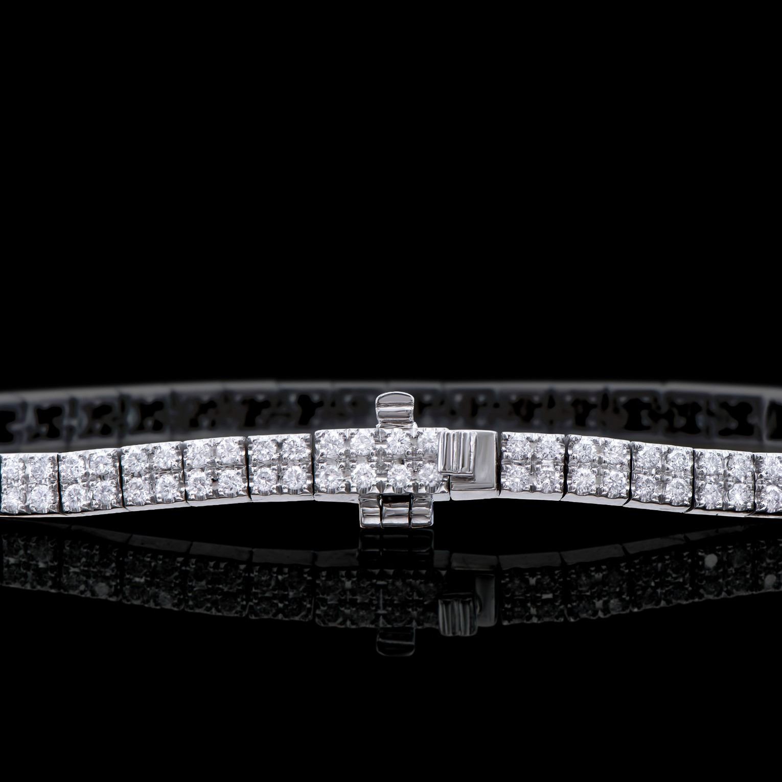 (192) round Diamonds with a total weight of 2.51cts with a color of H-I and clarity of I1-I2. Total weight of this bracelet is 12.25 grams. Length of this bracelet is 7.4 inches.