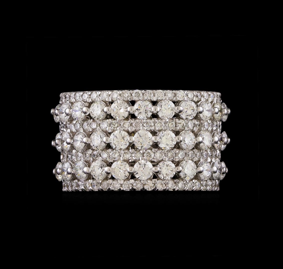 One electronically tested 14KT white gold ladies combination cast & assembled diamond ring with a flat shank with a bright polish finish. Identified with markings of "K14". Condition is new. Containing: Thirty-Three prong set round brilliant cut diamonds, measuring 2.50 - 2.50 x 1.50mm (depth est.) approximate total weight of 33 Stones = 1.88ct. Clarity: SI-2 to I-1. Color: H - I, Cut is Good. Eighty-Eight prong set round brilliant cut diamonds, measuring 1.30 - 1.30 x 0.78mm (depth est.) approximate total weight of 88 Stones = 0.70ct. Clarity: SI-2 to I-2. Color: H - I, Cut is Good. All diamonds are graded in the mounting, unless otherwise stated. Total Weight of Diamonds 2.59ct. Total Weight of Ring 9.80 grams. GGL Appraised at $7,175.00.