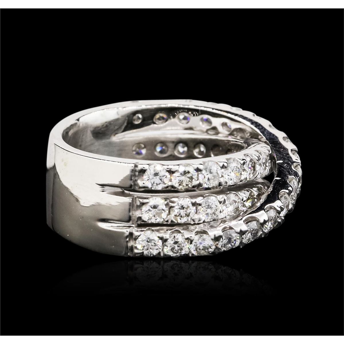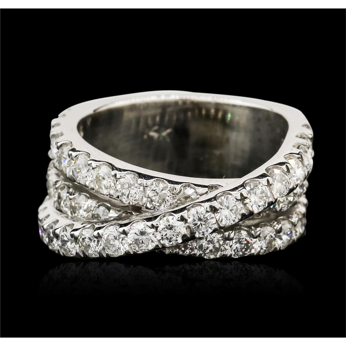 One electronically tested 14KT white gold ladies combination cast & assembled diamond ring with a bright polish finish. Identified with markings of "14K". Condition is new. Containing: Forty-Eight prong set round brilliant cut diamonds, measuring 2.50 - 2.50 x 1.50mm (depth est.) approximate total weight of 48 Stones = 2.74ct. Clarity: SI-2 to I-1. Color: I - J, Cut is Good. All diamonds are graded in the mounting, unless otherwise stated. Total Weight of Diamonds 2.74ct. Total Weight of Ring 10.30 grams. GGL Appraised at $7,005.00.