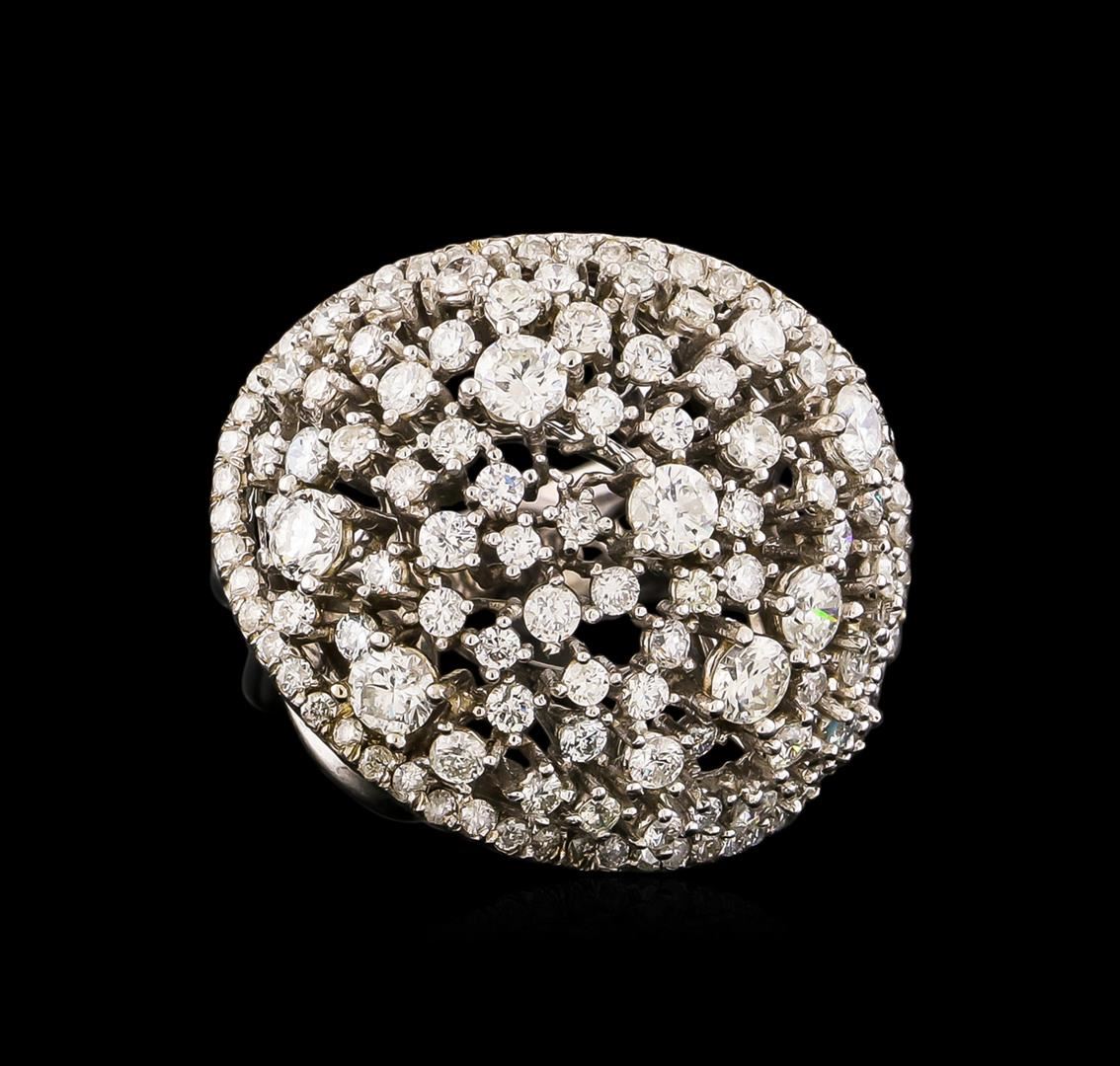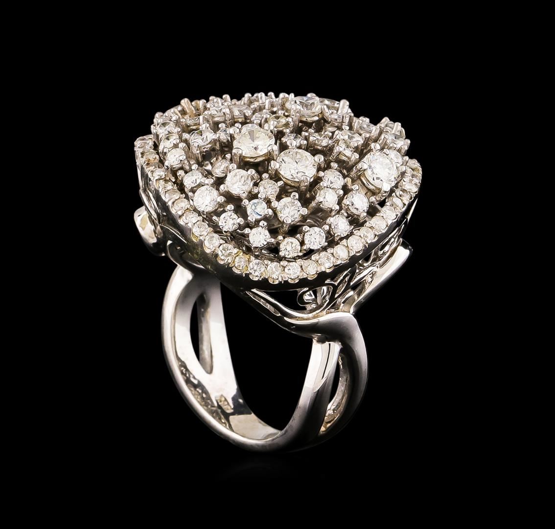 One electronically tested 14KT white gold ladies combination cast & assembled ring with a bright polish finish. Condition is new. Identified with markings of "585". Containing: Seven bead set round brilliant cut diamonds, measuring 3.30 - 3.30 x 1.98mm (depth est.) approximate total weight of 7 Stones = 0.92ct. Clarity: SI-1 to SI-2. Color: H - I. One Hundred Twenty-Two prong set round brilliant cut diamonds, measuring 1.80 - 1.40 x 0.96mm (depth est.) approximate total weight of 122 Stones = 1.82ct. Clarity: SI-2 to I-2. Color: I - J, Cut is Good. All diamonds are graded in the mounting, unless otherwise stated. Total Weight of Diamonds 2.74ct. Total Weight of Ring 13.90 grams. GGL Appraised at $13,245.00.