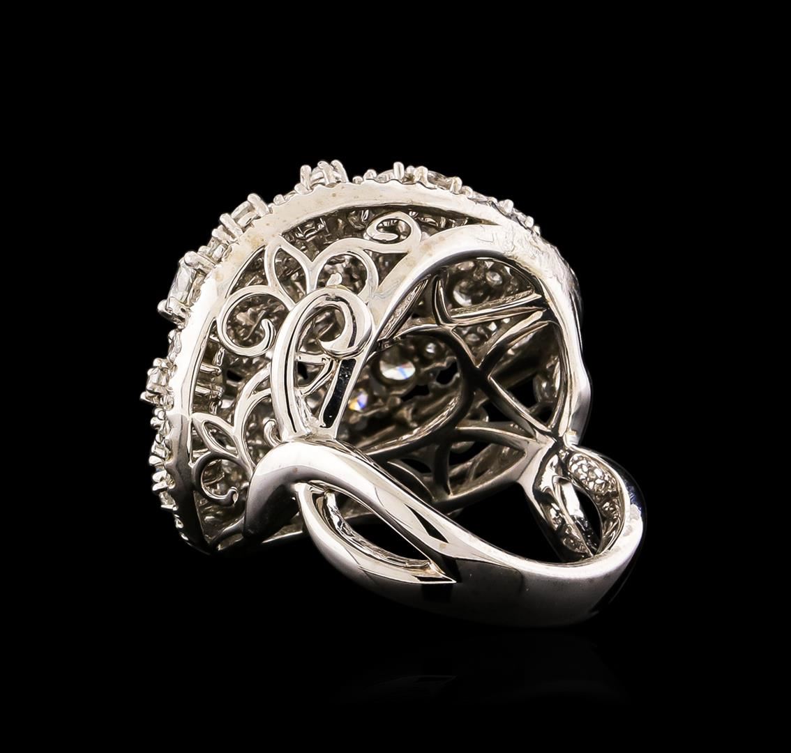 One electronically tested 14KT white gold ladies combination cast & assembled ring with a bright polish finish. Condition is new. Identified with markings of "585". Containing: Seven bead set round brilliant cut diamonds, measuring 3.30 - 3.30 x 1.98mm (depth est.) approximate total weight of 7 Stones = 0.92ct. Clarity: SI-1 to SI-2. Color: H - I. One Hundred Twenty-Two prong set round brilliant cut diamonds, measuring 1.80 - 1.40 x 0.96mm (depth est.) approximate total weight of 122 Stones = 1.82ct. Clarity: SI-2 to I-2. Color: I - J, Cut is Good. All diamonds are graded in the mounting, unless otherwise stated. Total Weight of Diamonds 2.74ct. Total Weight of Ring 13.90 grams. GGL Appraised.