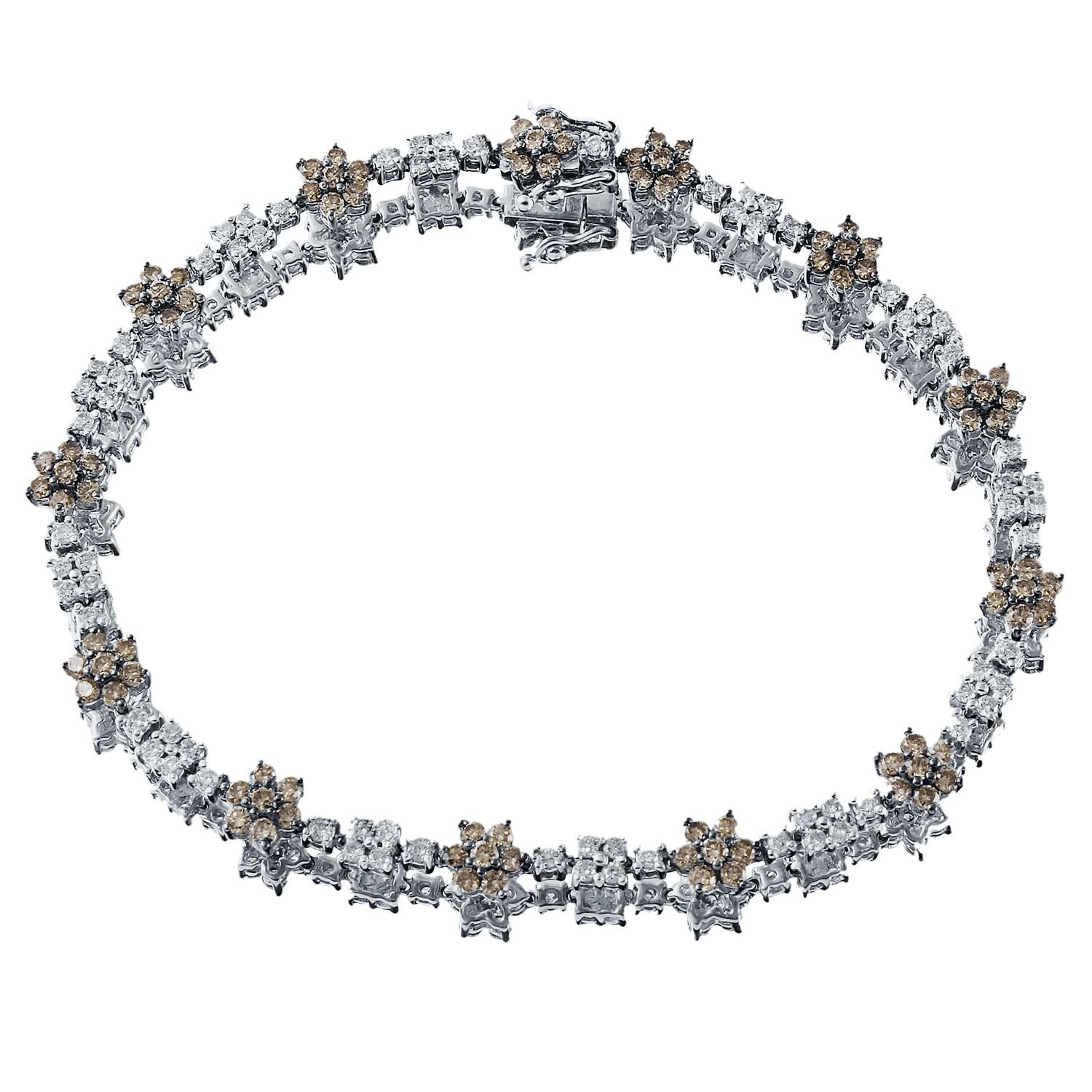 One 14KT White Gold 2.76ctw Diamond Bracelet. (84) Round Diamonds with a total weight of 1.80cts with a color of Brown and clarity of SI-2. (72) Round Diamonds with a total weight of 0.96cts with a color of I and clarity of I-2.Total length of this bracelet is 7 inches. Total weight of this bracelet is 5.81 grams.